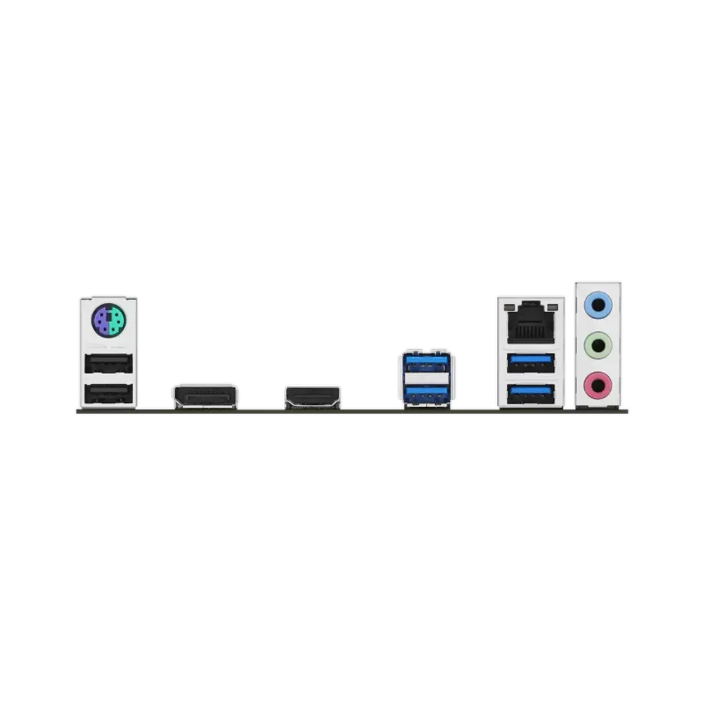 4 x USB 3.2 Gen 1 (5G) ports (4 x Type-A) 2 x USB 2.0 ports (2 x Type-A) 1 x DisplayPort 1 x HDMI port 1 x Realtek 1Gb Ethernet port 3 x Audio jacks 1 x PS/2 Keyboard/Mouse combo port |