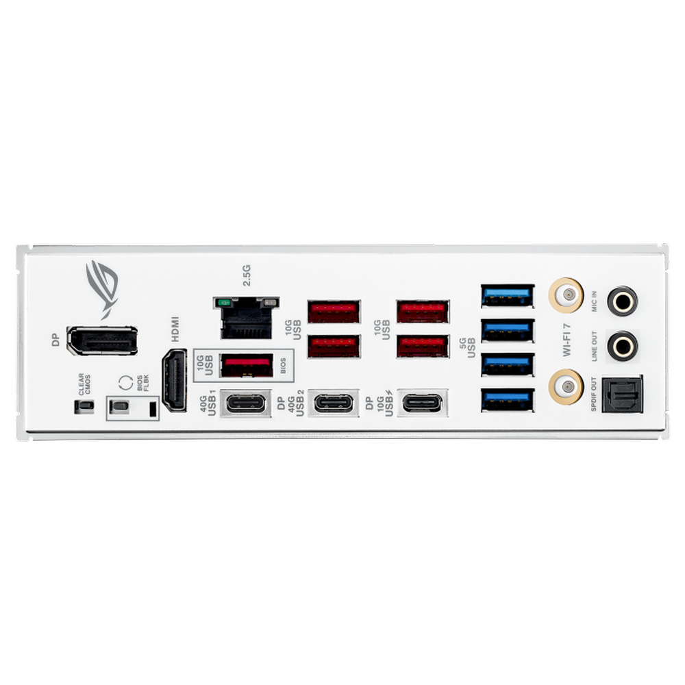 | Back Panel I/O Ports | 2 x USB4® (40Gbps) ports (2 x USB Type-C® with DP Alt mode) 6 x USB 10Gbps ports (5 x Type-A + 1 x USB Type-C® with up to 30W PD Fast-charge)** 4 x USB 5Gbps ports (4 x Type-A) 1 x DisplayPort, 1 x HDMI™ port, Wi-Fi module |