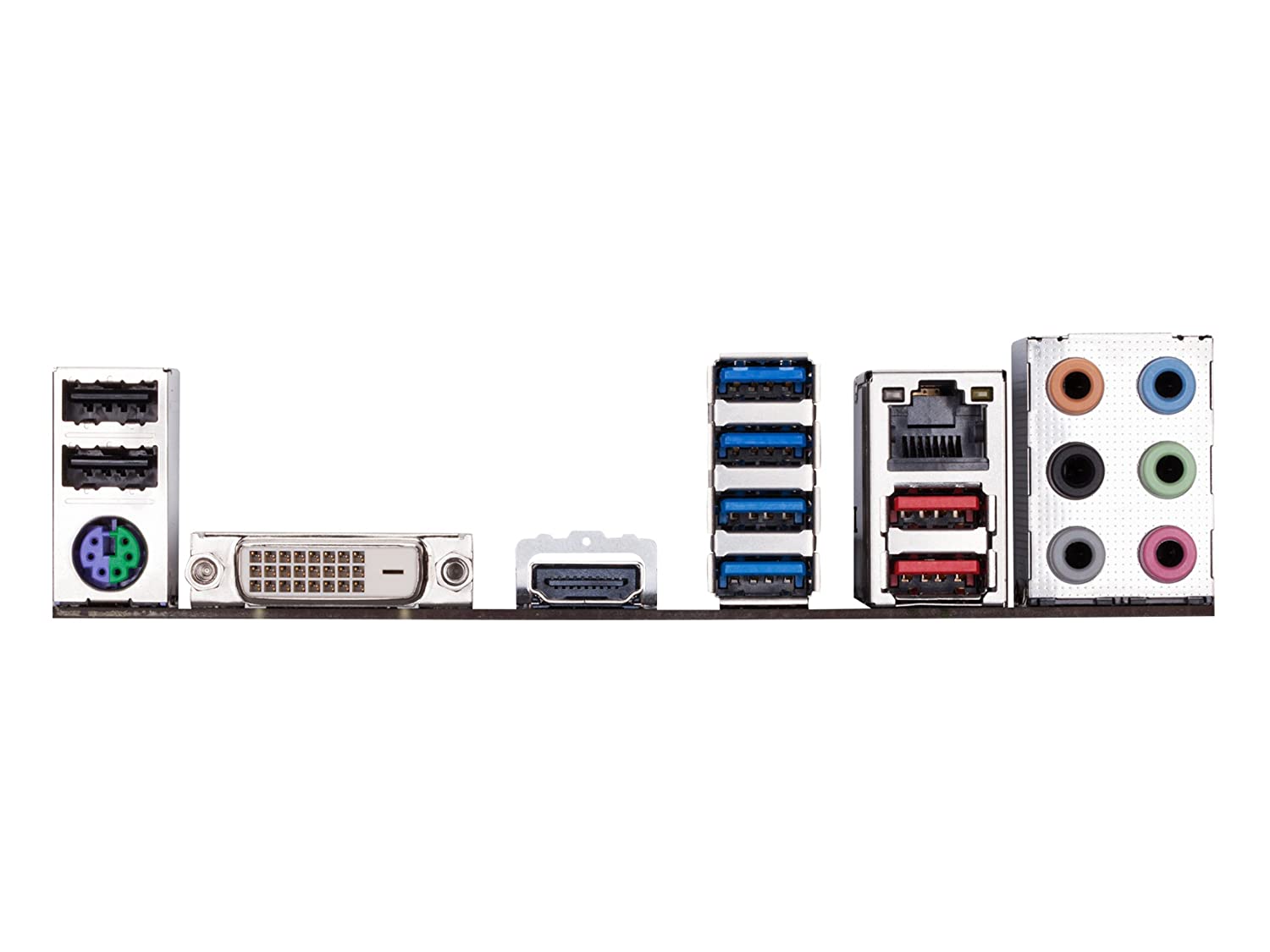 | Back Panel Connectors | 1 x PS/2 keyboard/mouse port 1 x DVI-D port 1 x HDMI port 2 x USB 3.1 Gen 2 Type-A ports (red) 4 x USB 3.1 Gen 1 ports 2 x USB 2.0/1.1 ports 1 x RJ-45 port 6 x audio jacks |