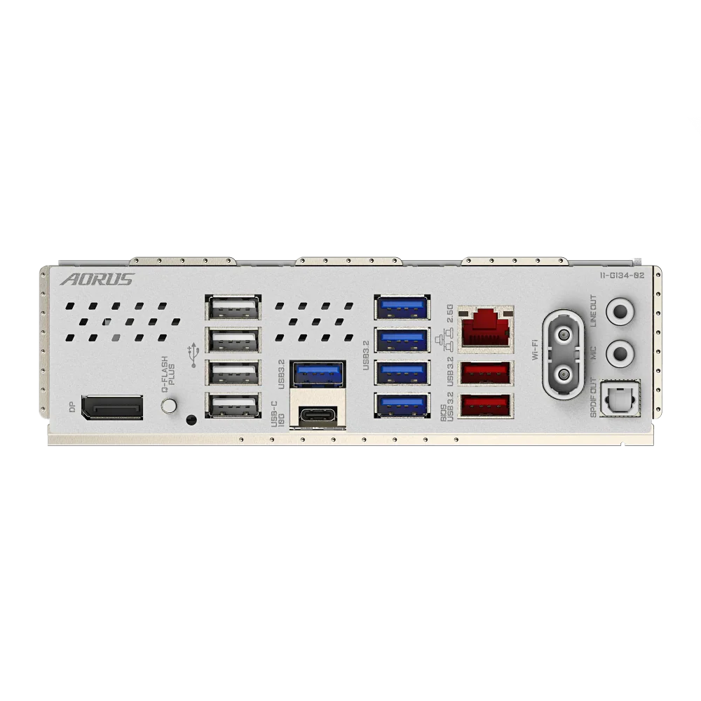 | Back Panel Connectors | 1 x DisplayPort (Note) 1 x Q-Flash Plus button 4 x USB 2.0/1.1 ports 5 x USB 3.2 Gen 1 ports 2 x USB 3.2 Gen 2 Type-A ports (red) 1 x USB Type-C® port, with USB 3.2 Gen 2 support 1 x RJ-45 port 2 x antenna connectors (2T2R) 2 x audio jacks 1 x optical S/PDIF Out connector (Note) Actual support may vary by CPU. |
