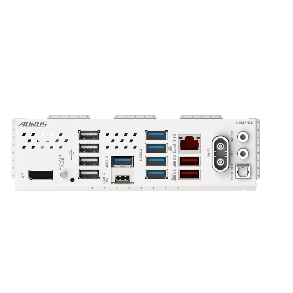 | Back Panel Connectors | 1 x DisplayPort* 1 x Q-Flash Plus button 4 x USB 2.0/1.1 ports 1 x USB Type-C® port, with USB 3.2 Gen 2 support 5 x USB 3.2 Gen 1 ports 1 x RJ-45 port 2 x USB 3.2 Gen 2 Type-A ports (red) 2 x antenna connectors (2T2R) 2 x audio jacks 1 x optical S/PDIF Out connector * Actual support may vary by CPU. |