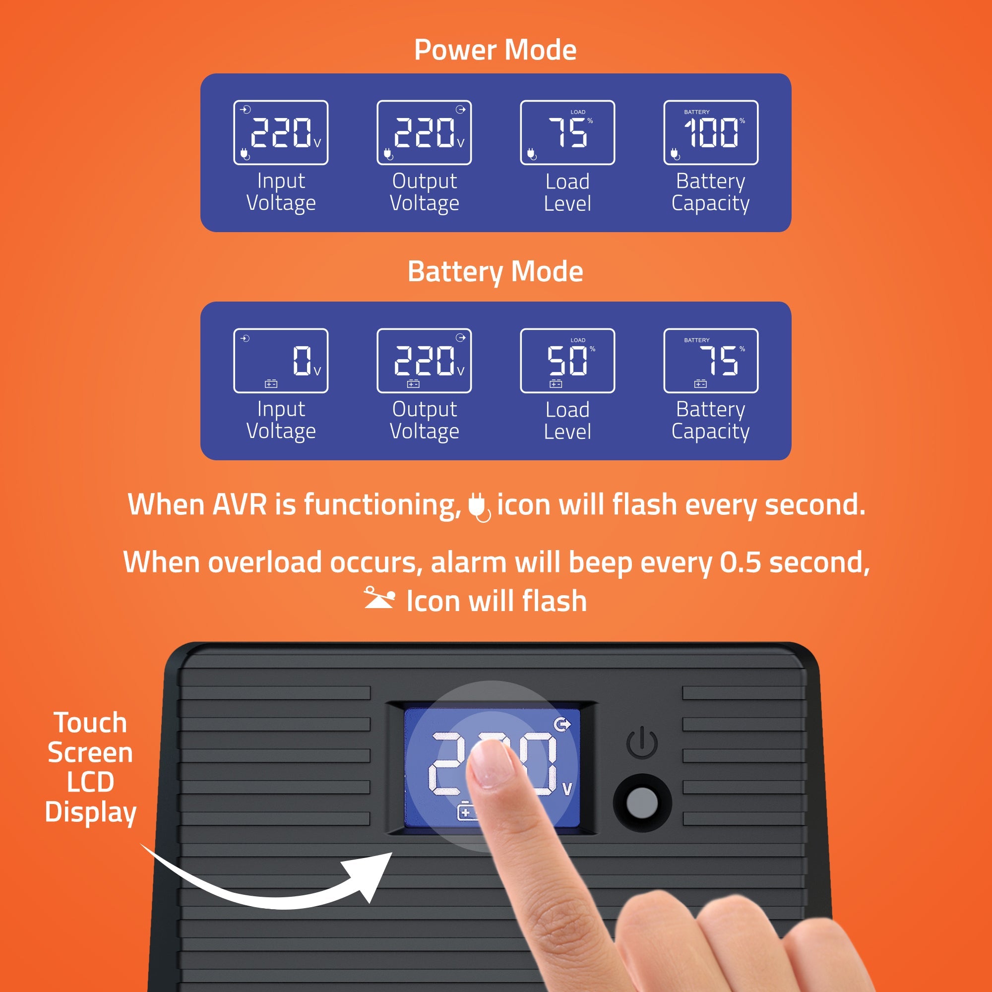Artis 1000 LCD UPS Line Interactive Design, compact Size & Light weight. Up to 60* minutes of backup depending on the configuration of the PC. A Higher Configuration PC could get less back up due to the power requirement of the PC. Superior Micro controller ensures high reliability. Automatic Voltage Regulator (AVR) for Boost & Buck. Cold Start function. Generator Compatible. Heavy Duty Battery for Longer life & Higher Reliability. Up to 60* minutes of backup depending upon the load levels of the equipment connected BIS Certified, Auto Restart while AC Mains recovery. LCD screen helps provide Load Level, Battery capacity, AVR Activation, Overload & Low Battery.