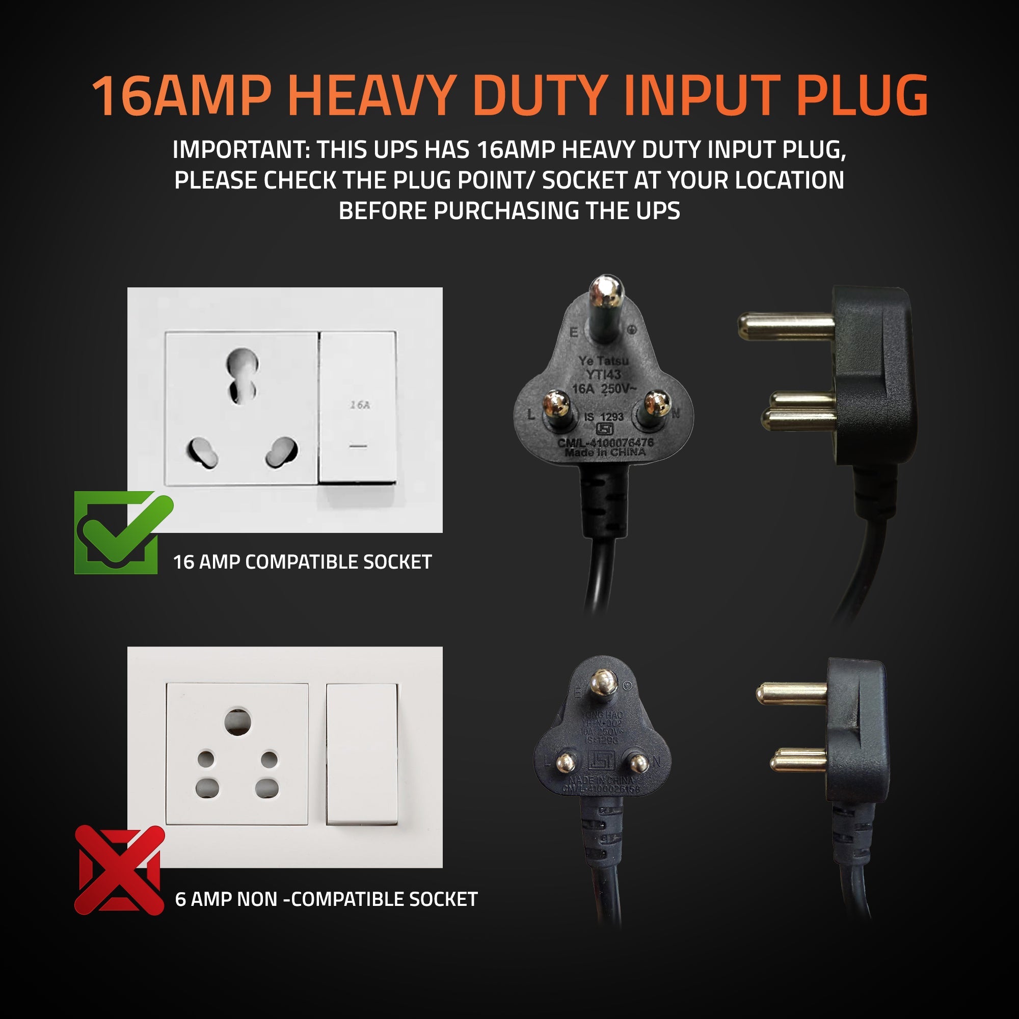 Artis 2000VA Line Interactive UPS for Personal/Gaming Computers, Desktop PCs, Laptops, Routers, Networking Devices and Gaming Consoles with 16A INPUT PLUG.