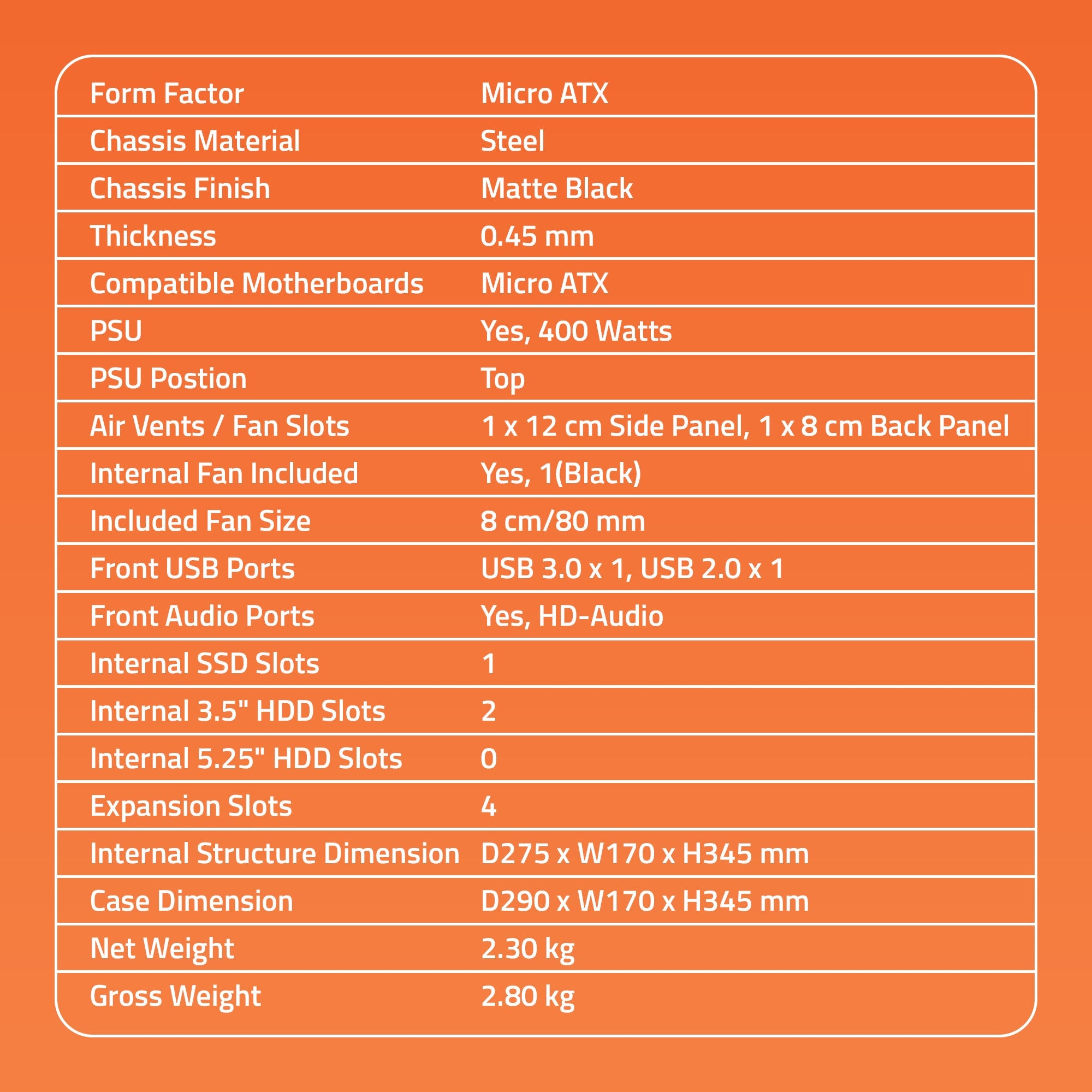2220 3.0 C Computer Cabinet Support Micro ATX Motherboard, 1 x 80mm Fan with 400W power Supply