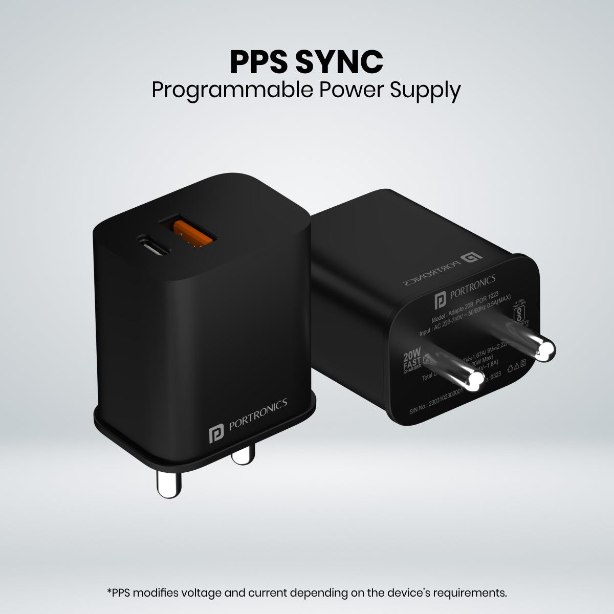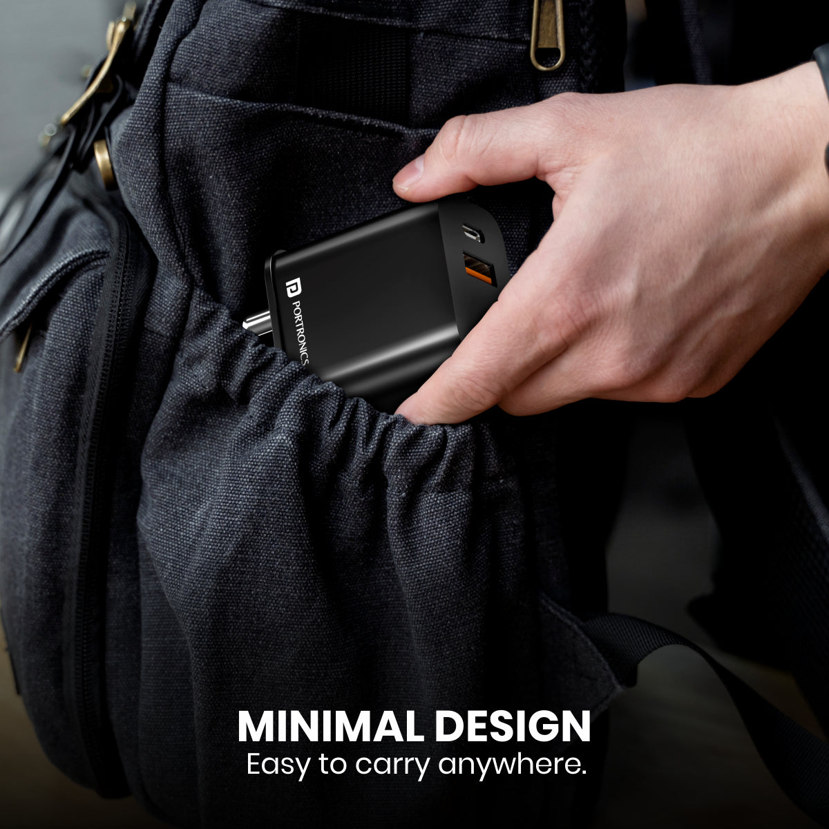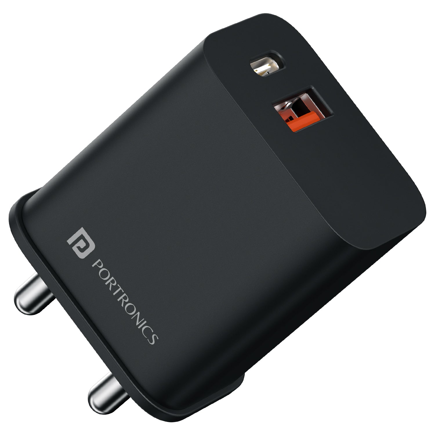 • Portable design : Portronics Adapto 20B  20-watt charger with type C + USB-A | Adapter with PD charging | iOS & Android compatibility | Smart Chip