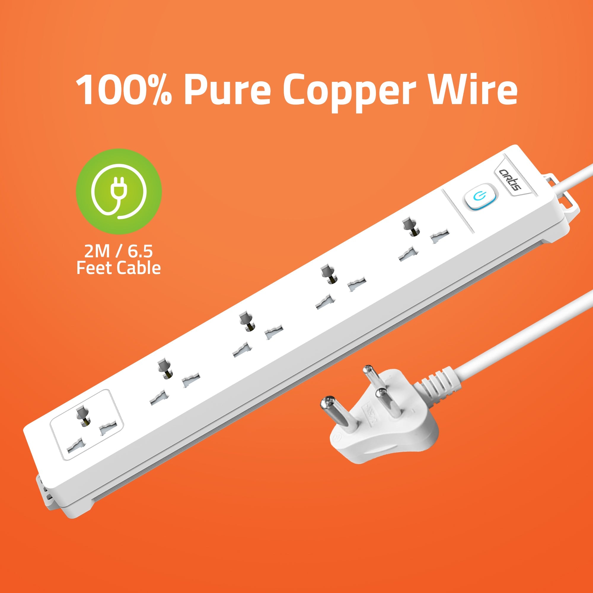 Artis AR-5SS 5 Universal Sockets with single switch, child safe shutter Protection. The Artis Surge protector is a product to protect your Home / Office electrical equipment’s against power Surge & Spike. Multipurpose Universal socket with high quality housing material.