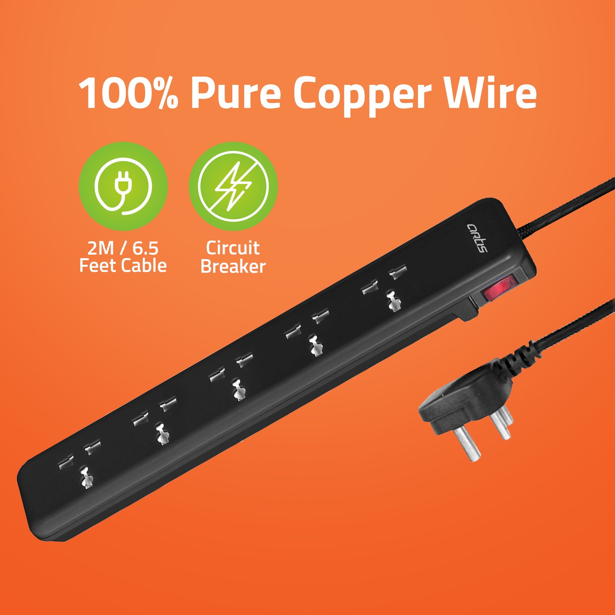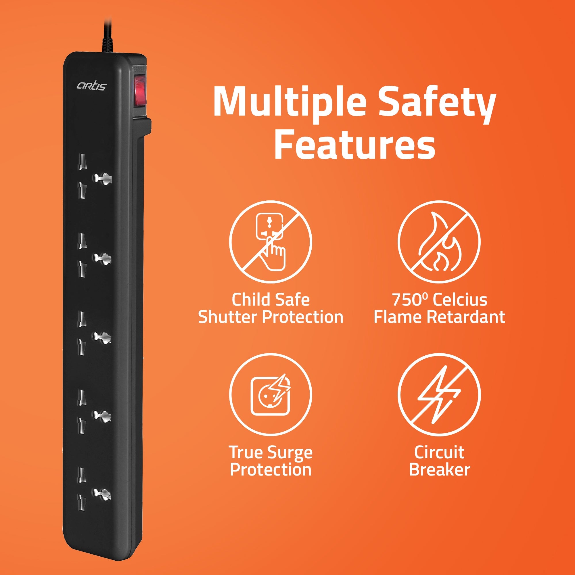 Artis AR-5SS-CB 5 Universal Sockets with single switch, child safe shutter Protection. The Artis Surge protector is a product to protect your Home / Office electrical equipment’s against power Surge...