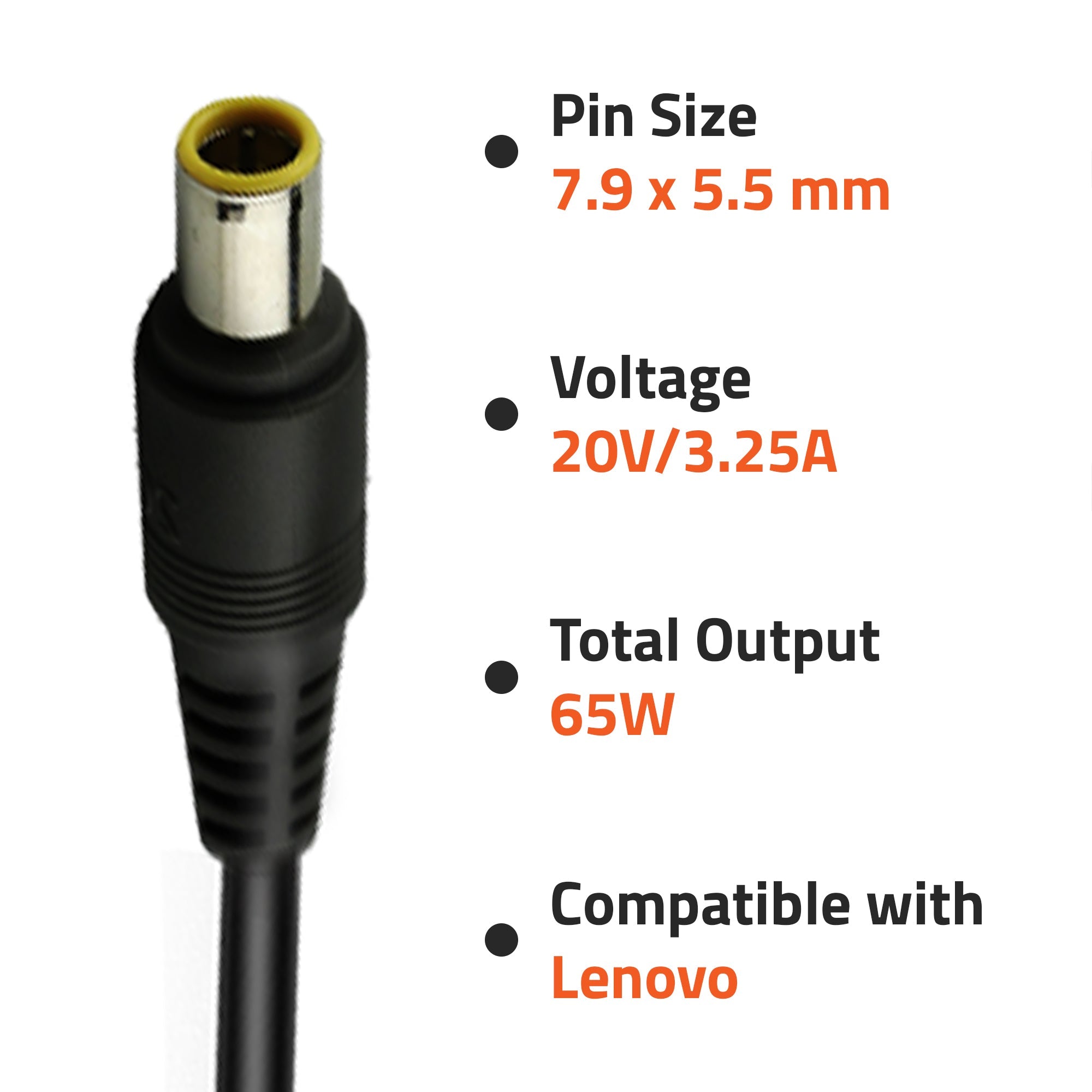 AR0508 65Watt Laptop Adapter Compatible with Lenovo Laptops (20V/3.25A ,Pin : 7.9 x 5.5 mm)