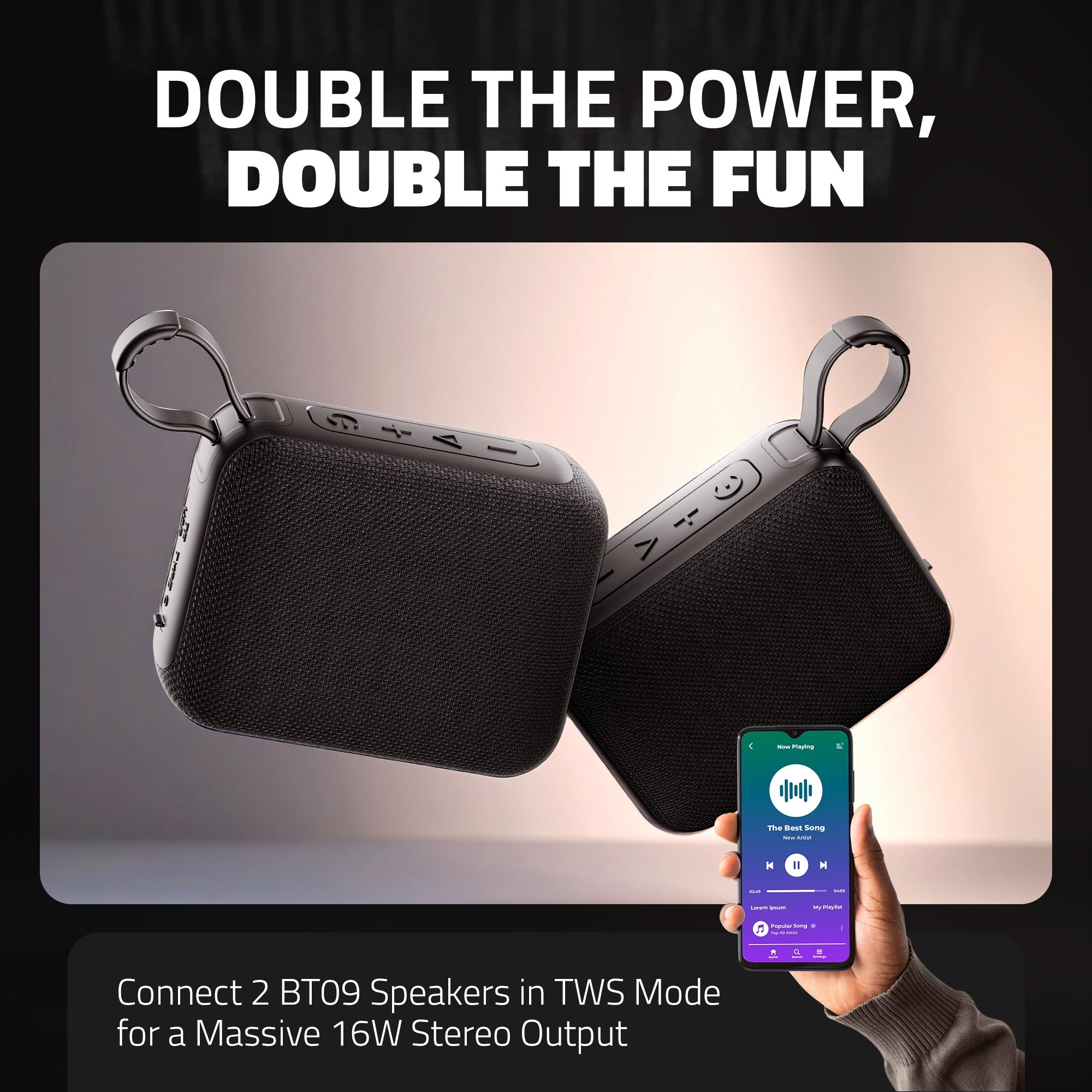 Artis BT09 is the perfect compact wireless Bluetooth speaker. The speaker is Portable & Light weight also Packed with features such as USB inputs, TF card inputs TWS mode., it is ideal for every occasion and all your needs. 8W RMS speaker giving you a dynamic sound effect with crystal clear sound. playback. 1200mAh battery for extended usage. Listen to music with volume adjustment, previous/next/pause functions. Therefore is applicable in shower room, and by the pool or beach. It also comes with a Lanyard making it very convenient for you to carry it around.