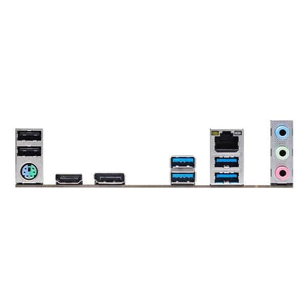 3 x Antenna Mounting Points - 1 x PS/2 Mouse/Keyboard Port - 1 x HDMI Port - 1 x DisplayPort 1.4 - 4 x USB 3.2 Gen1 Ports (ASMedia ASM1074 hub) (Supports ESD Protection) - 2 x USB 2.0 Ports (Supports ESD Protection) - 1 x RJ-45 LAN Port with LED (ACT/LINK LED and SPEED LED) - HD Audio Jacks: Line in / Front Speaker / Microphone |