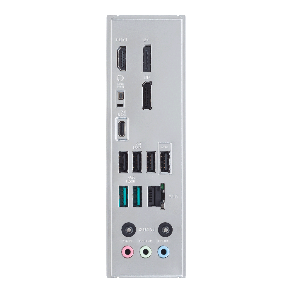 2 x USB 10Gbps ports (2 x Type-A) 1 x USB 5Gbps port (1 x USB Type-C®) 4 x USB 2.0 ports (4 x Type-A) 2 x DisplayPort 1 x HDMI™ port 1 x Wi-Fi module 1 x Realtek 2.5Gb Ethernet port 3 x Audio jacks 1 x BIOS FlashBack™ button |