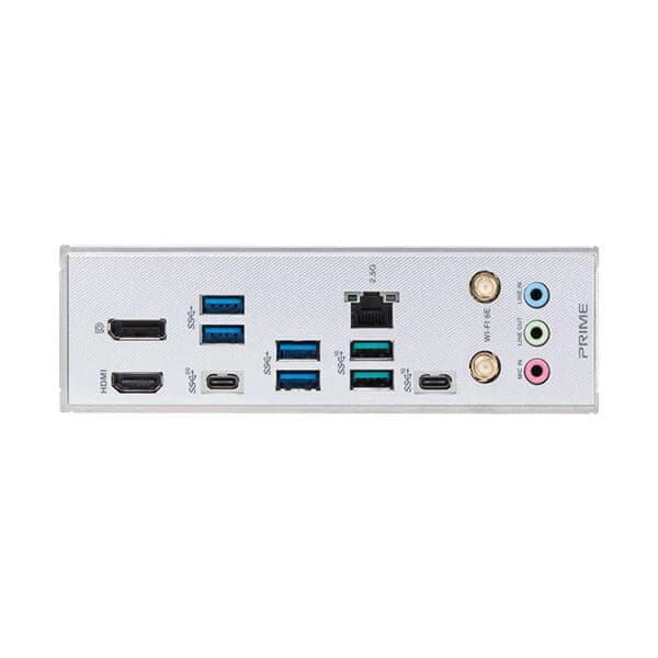 1 x USB 3.2 Gen 2x2 port (1 x USB Type-C®) 3 x USB 3.2 Gen 2 ports (2 x Type-A, 1 x Type-C®) 4 x USB 3.2 Gen 1 ports (4 x Type-A) 1 x DisplayPort 1 x HDMI® port 1 x Wi-Fi Module 1 x Intel® 2.5Gb Ethernet port 3 x Audio jacks |