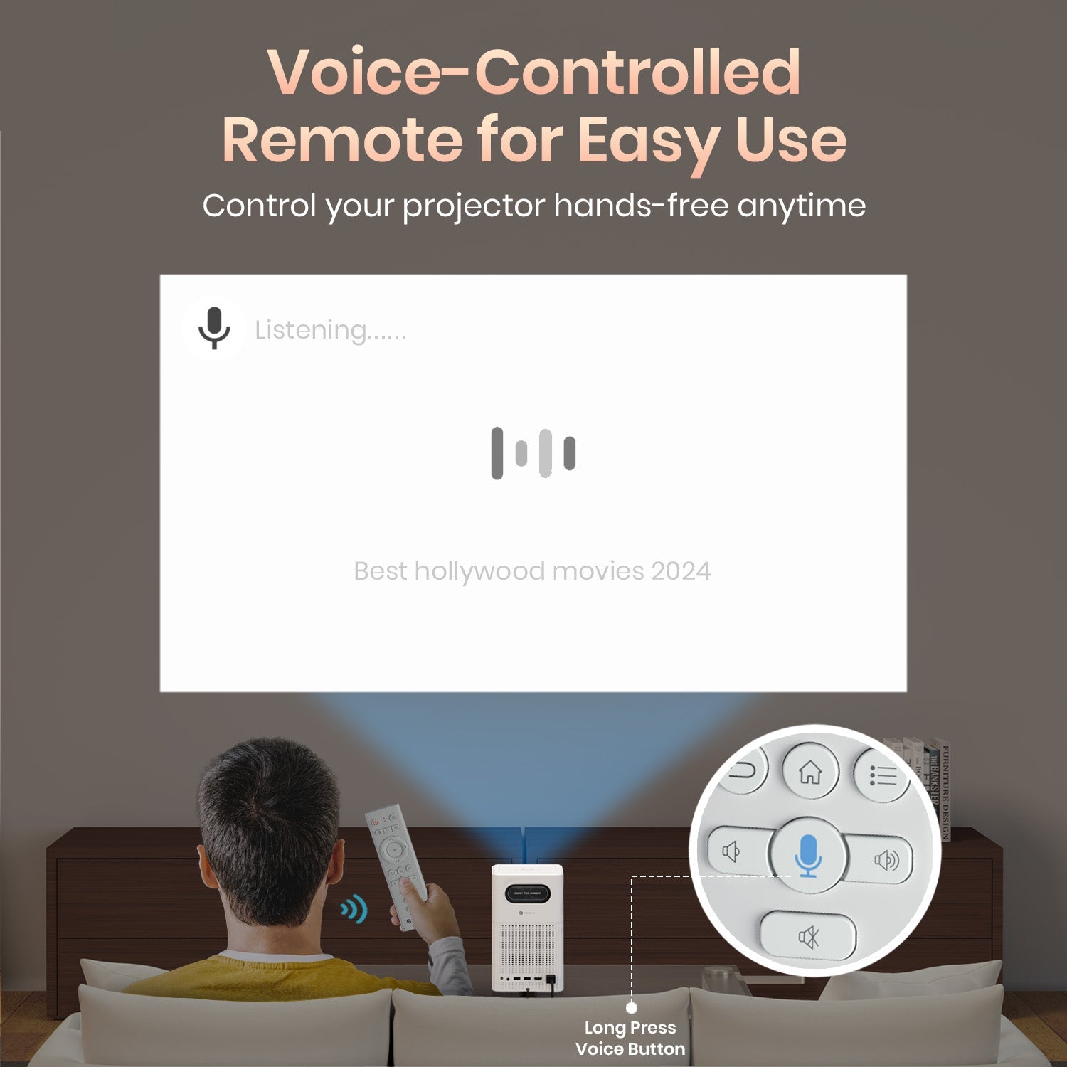 - Voice-Enabled Remote Control : Experience effortless search with the Beem 500’s voice-enabled remote control. Simply speak to search for movies or TV series, and let the projector do the rest, making your entertainment experience intuitive and hands-free.