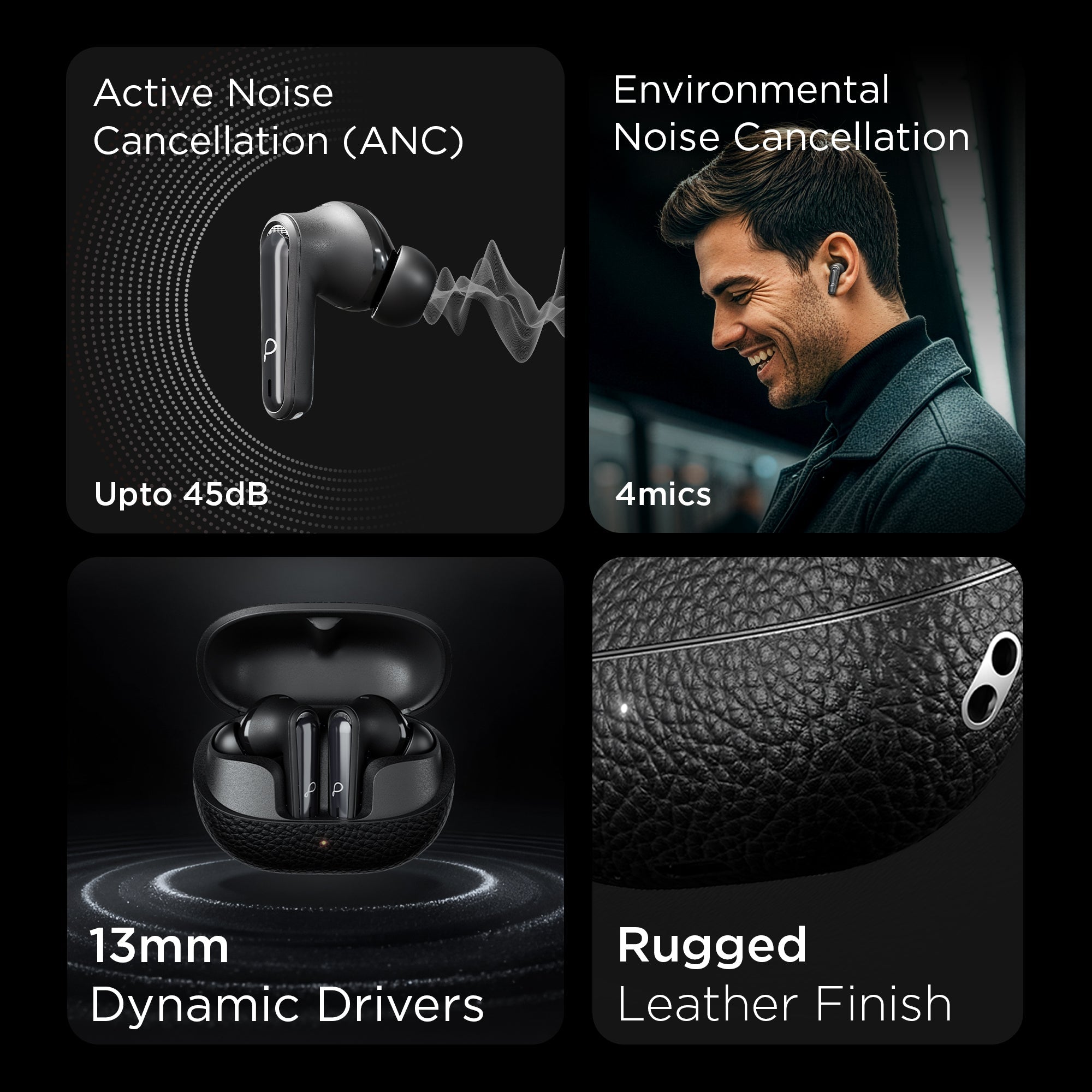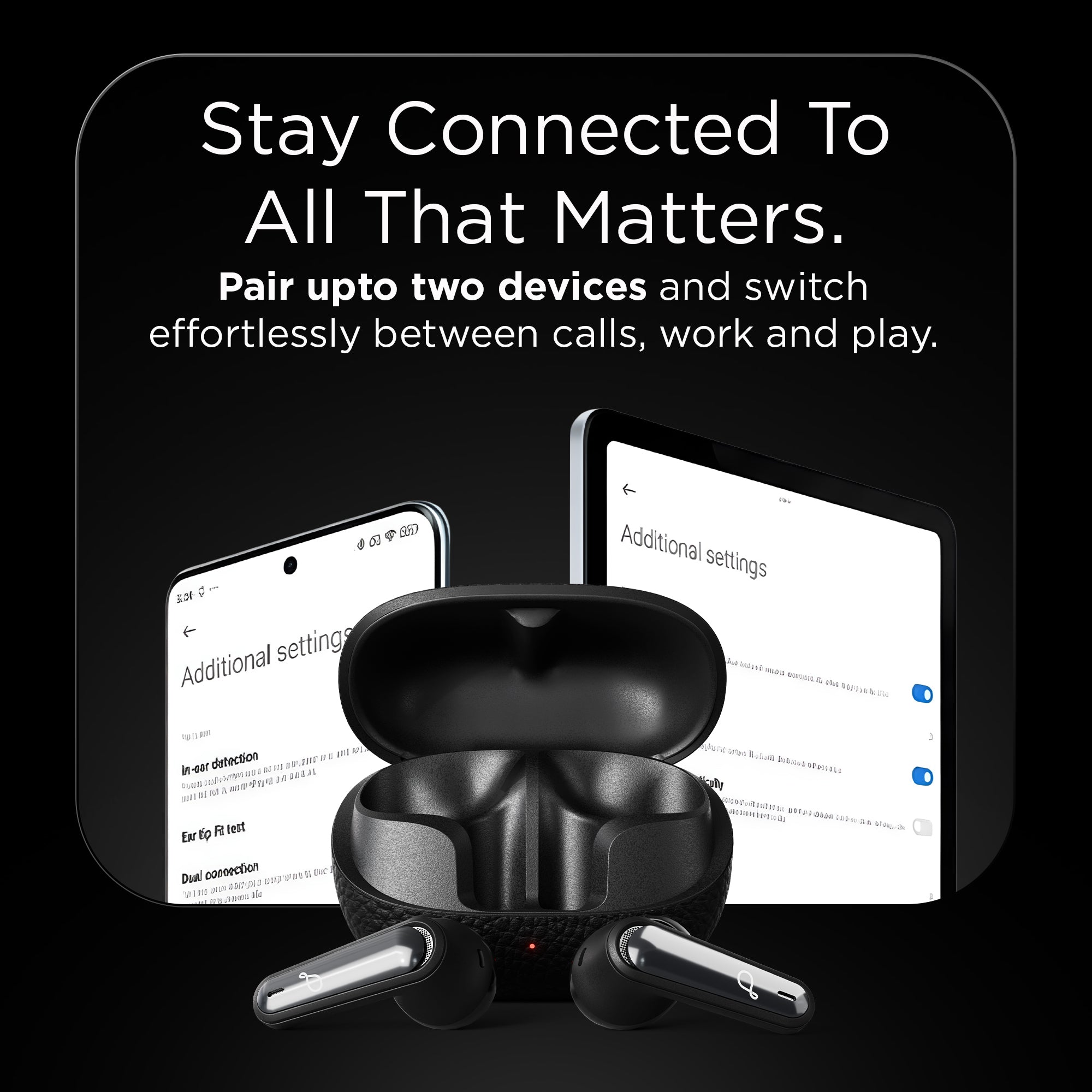 With 4 built in microphones| every call feels natural and noise free. The premium leather texture finish adds a touch of luxury| while the snug & secure ergonomic fit ensures all day comfort. Stay productive with voice assistant integration and effortlessly switch between devices using dual pairing support.