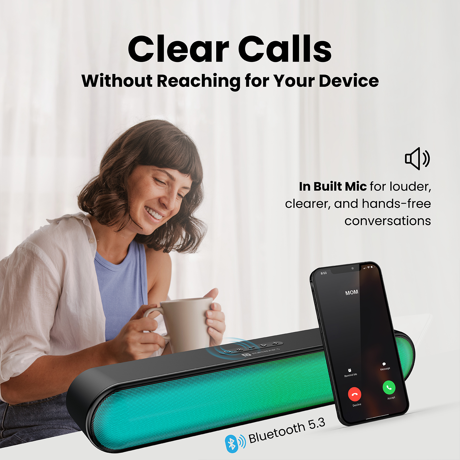 Versatile Connectivity: Connect effortlessly to various devices with multiple interfaces, including Bluetooth 5.3, USB port, and 3.5mm AUX port. Enjoy uninterrupted music on the sound bar from various music sources.