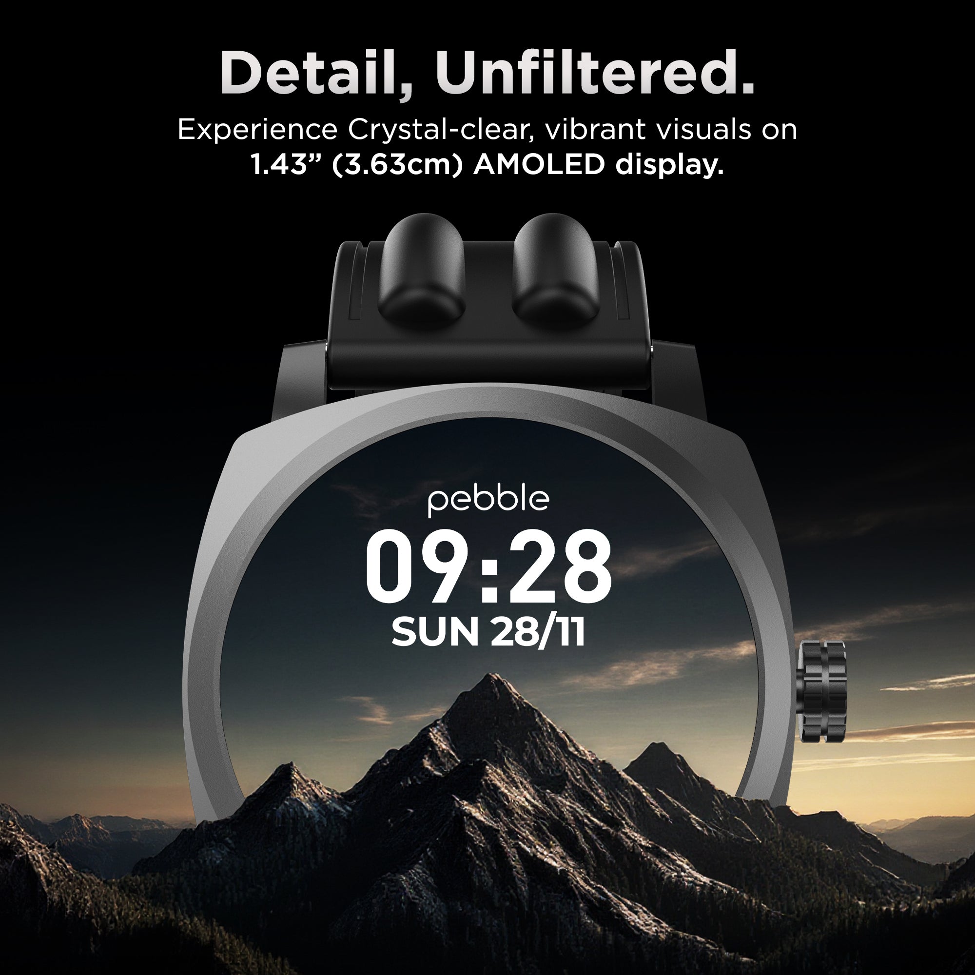 Meet the Pebble Endure 2, the smartwatch engineered for endurance and style. Featuring a 1.43” AMOLED Display with Always-On Mode, this watch delivers stunning visuals and quick access to time and alerts, even under the sun.