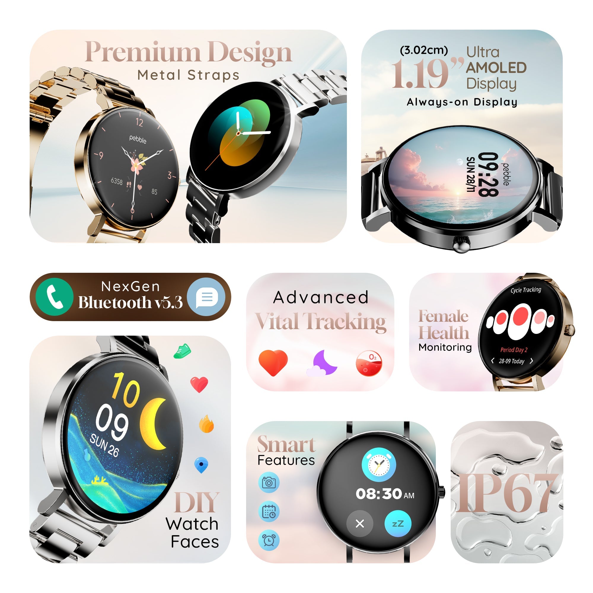 Pebble EVE Women’s Smartwatch – Elegance Powered by IntelligencePremium Design & DisplayFeatures a stunning 1.19” Ultra AMOLED Display with 700 Nits brightness for vivid visibility even under direct sunlight.Crafted with...