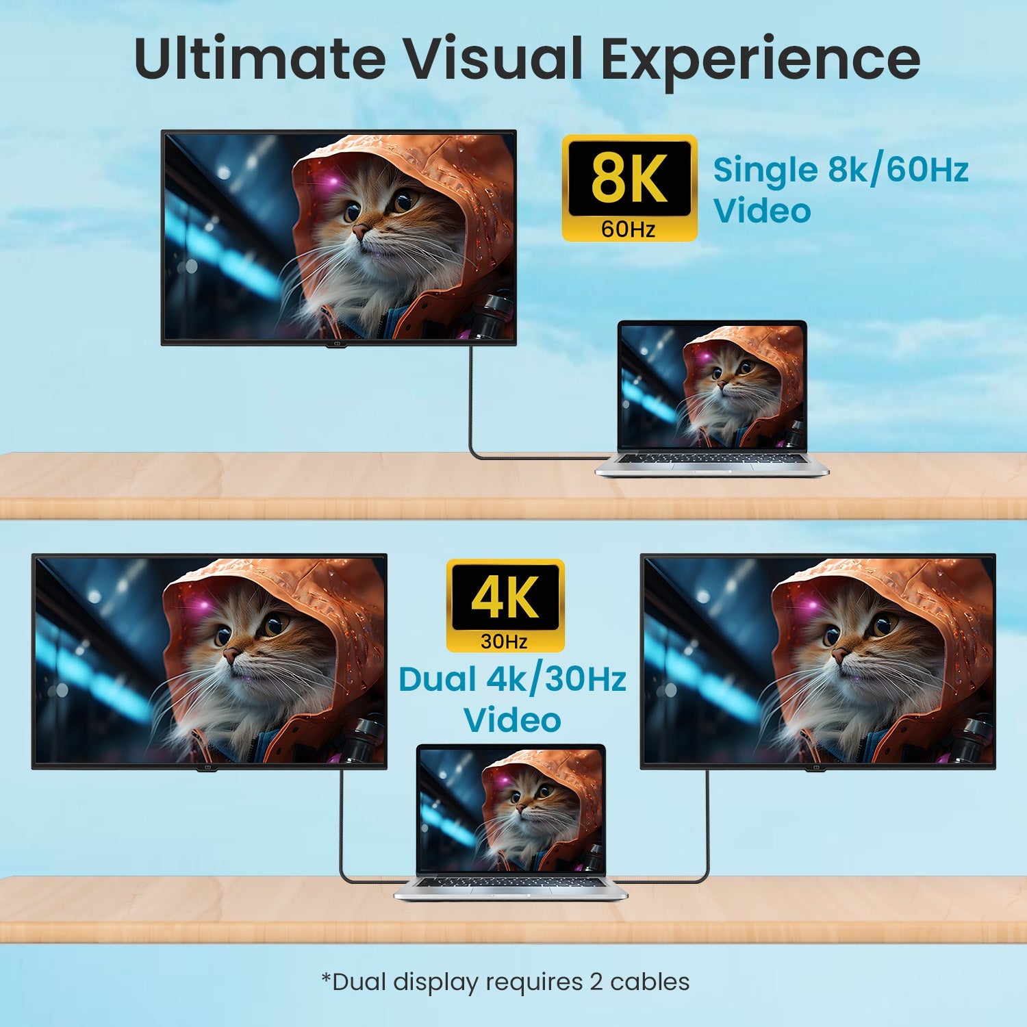 • Single 8K & Dual 4K - The USB 4 Cable supports a single 8K display feed and dual 4K video display, and connects directly to an external monitor via the Thunderbolt 4 port, giving you more screen real estate and higher resolution. Whether you're watching high-definition movies, recording video or processing images, it's easy to handle.