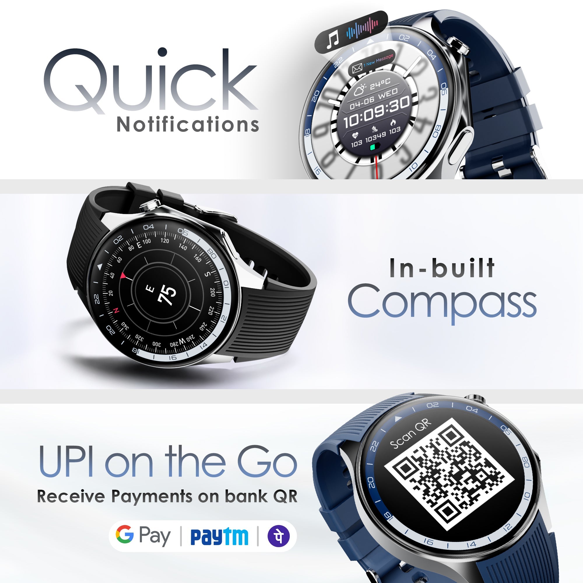 Stay ahead with Bluetooth Calling, custom QR code for payments, smart reminders, and an intuitive compass for your adventures. Track your steps, heart rate, sleep, SpO2 levels, and more with multiple sports modes that keep up with your fitness lifestyle.