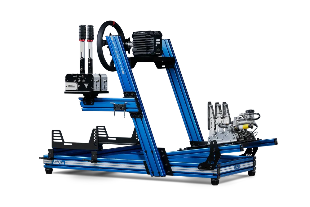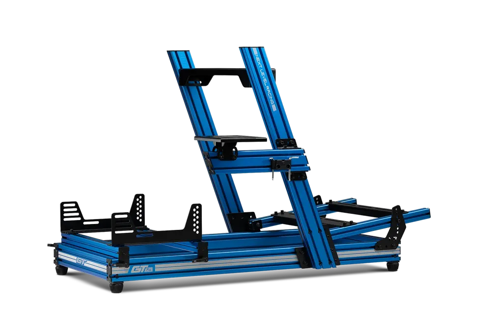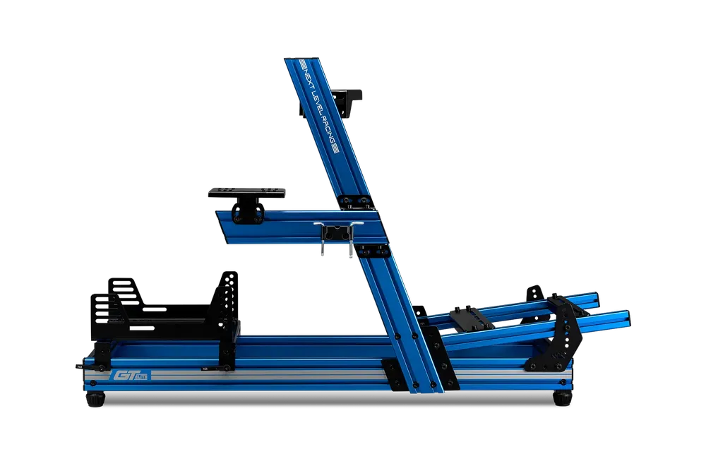 Introducing an official Ford Licensed product, the Next Level Racing® GTElite Ford GT Edition Cockpit. The NEXT LEVEL GTElite Ford GT Edition cockpit’s patent-pending design brings rigidity and stability into a new price point making it the best mid-range aluminium profile cockpit on the market. Premium blue anodization finish, laser etched Ford Oval logo, Ford GT Logo, and the laser etched iconic Ford GT stripes, the GTElite Ford GT Cockpit completes the Ford brand experience for the user. With attention to detail and engineering as seen on our Elite series, the GTElite Ford Edition compared to mid-range cockpits in its class is more rigid, easier to assemble, provides more inclusions, while providing a higher quality finish.