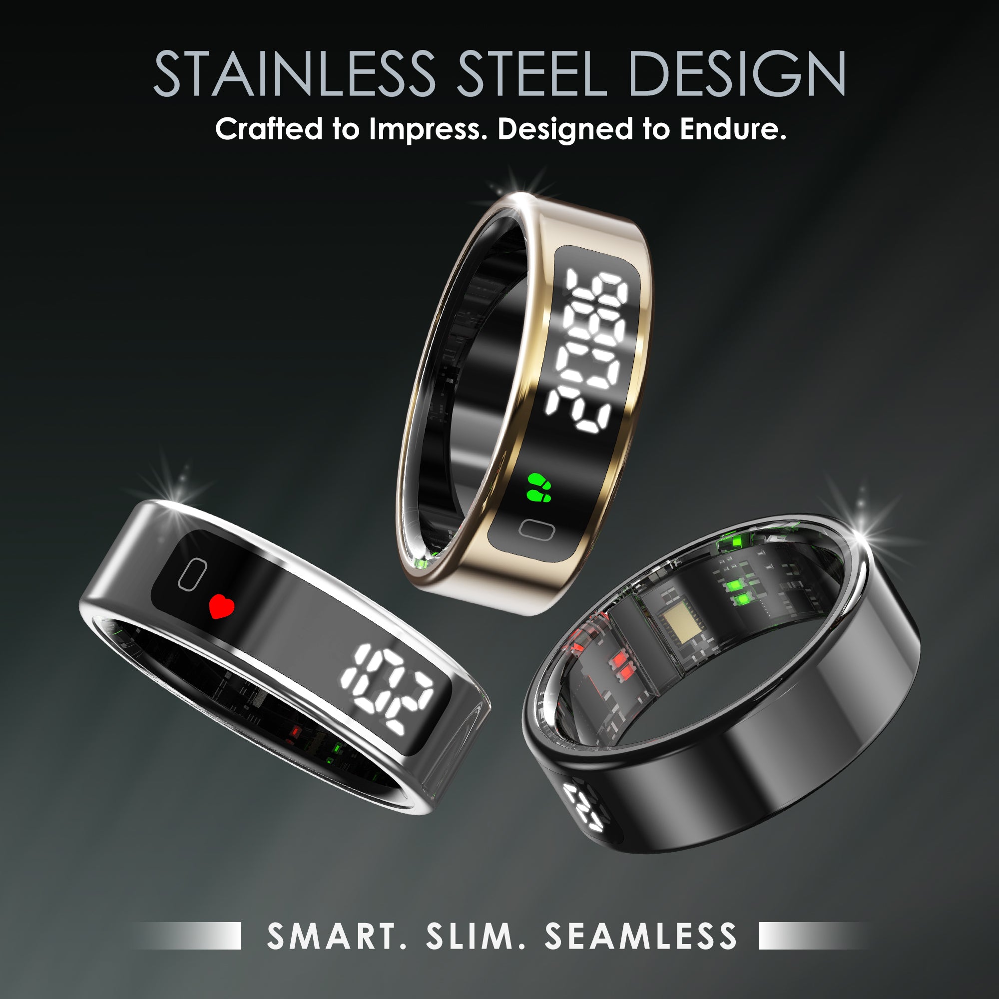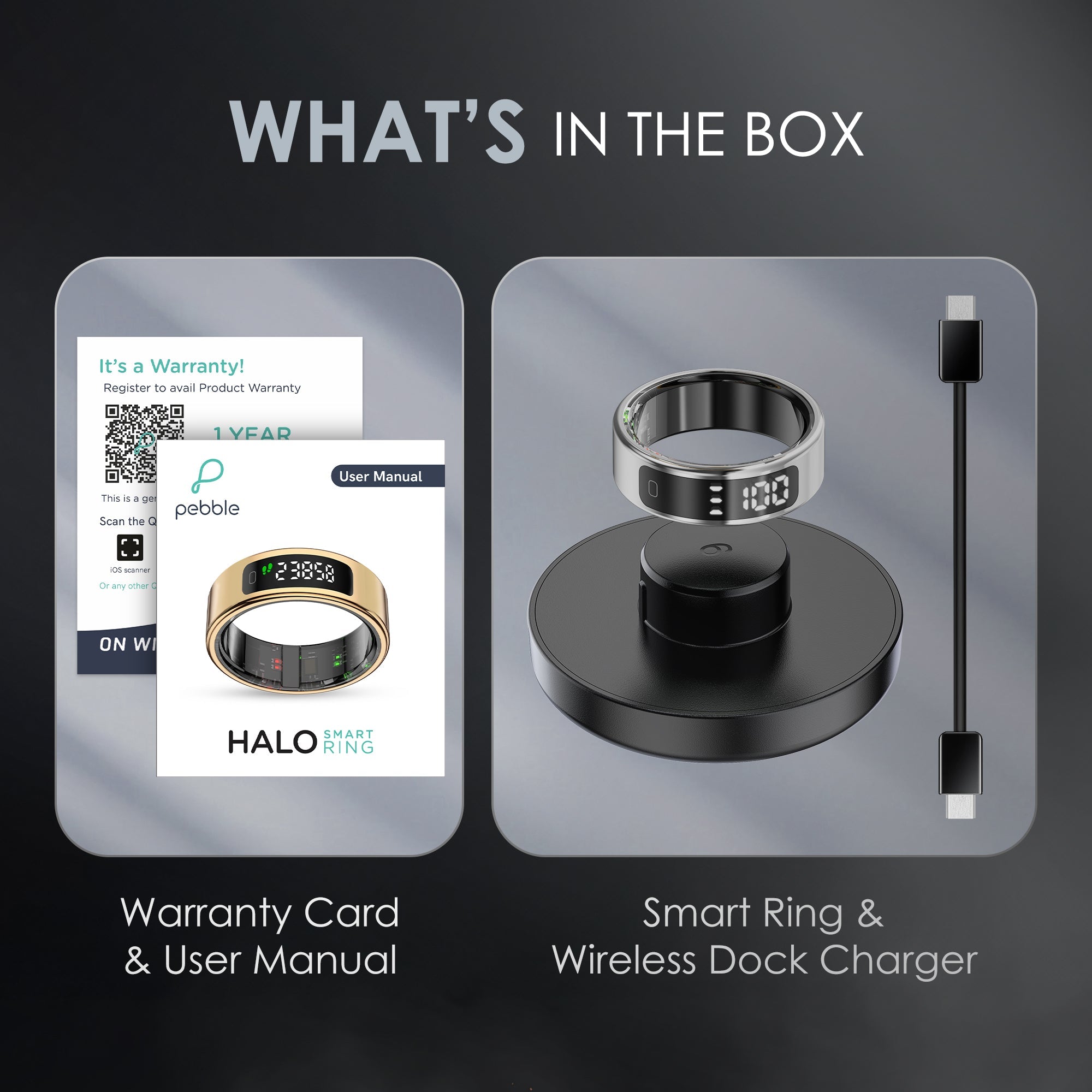 Introducing the Pebble Halo Smart Ring - a sophisticated fusion of style and technology. This sleek digital ring features a crisp LED display that shows time and notifications at a glance. Available in elegant black, silver, and gold finishes, it seamlessly combines fashion with functionality. The ring's premium build quality ensures durability while maintaining a comfortable fit for all-day wear. Its modern design incorporates a clear digital display that's easily readable yet discreet. The smart ring comes with essential features packed into its compact form factor, making it perfect for those who prefer minimalist tech accessories. The FCC and CE certifications indicate compliance with international standards. Whether you're in a meeting or at a social gathering, this smart ring offers a subtle way to stay connected without the distraction of a traditional smartwatch. Its versatile colour options ensure it complements any style or occasion, while the durable construction promises lasting performance.