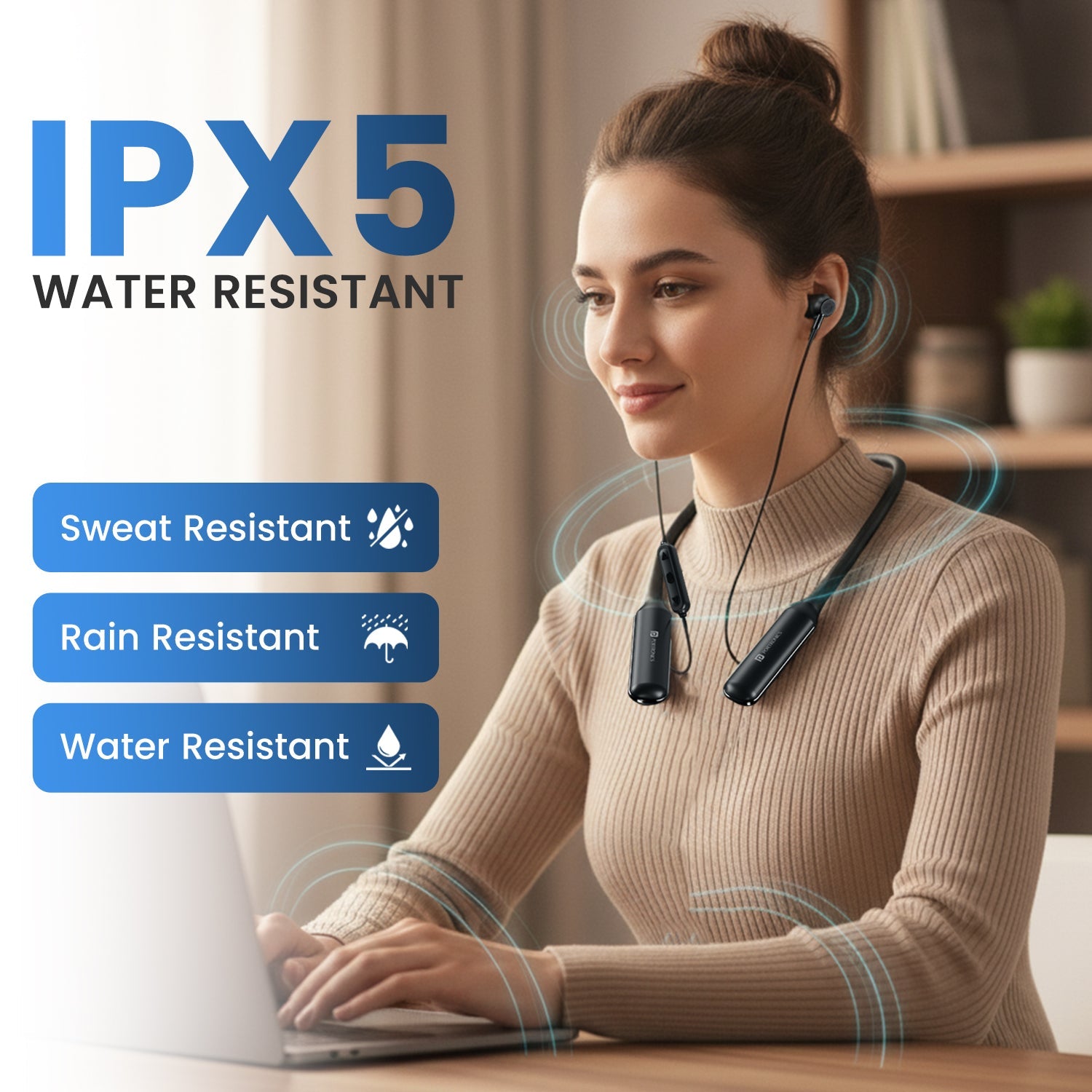 • 100 Hours Playtime Neckbandwireless in-ear Bluetooth earphones with mic; ideal for music, calls, workouts & travel; long-battery neckband for all-day use.