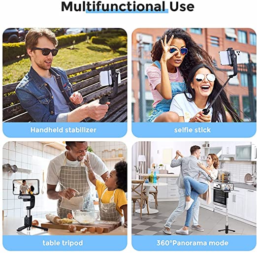 - 【4 Types of Usage】Equipped with a built-in tripod and extendable 19.6in max selfie stick, hohem iSteady Q gimbal combines the 4 various modes, including the handheld gimbal stabilizer, extendable selfie stick, phone tripod stands and 360° Follow mode on the table. This lightweight and portable gimbal stabilizer can easily meet various shooting scenes and bring you an unlimited shooting experience.