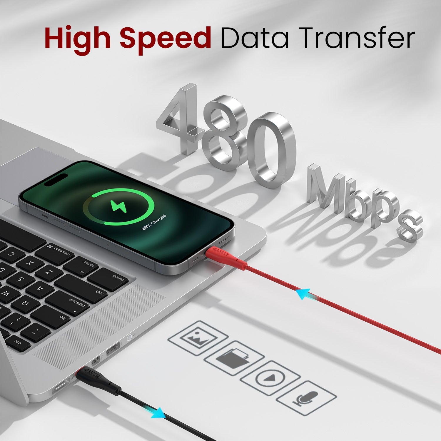 • Fast Data Sync at 480Mbps - Not just for charging—this cable also supports high-speed data transfer at up to 480Mbps, allowing you to sync photos, music, videos, and files quickly and efficiently between your iPhone and MacBook, iPad, or other Type-C-enabled devices.