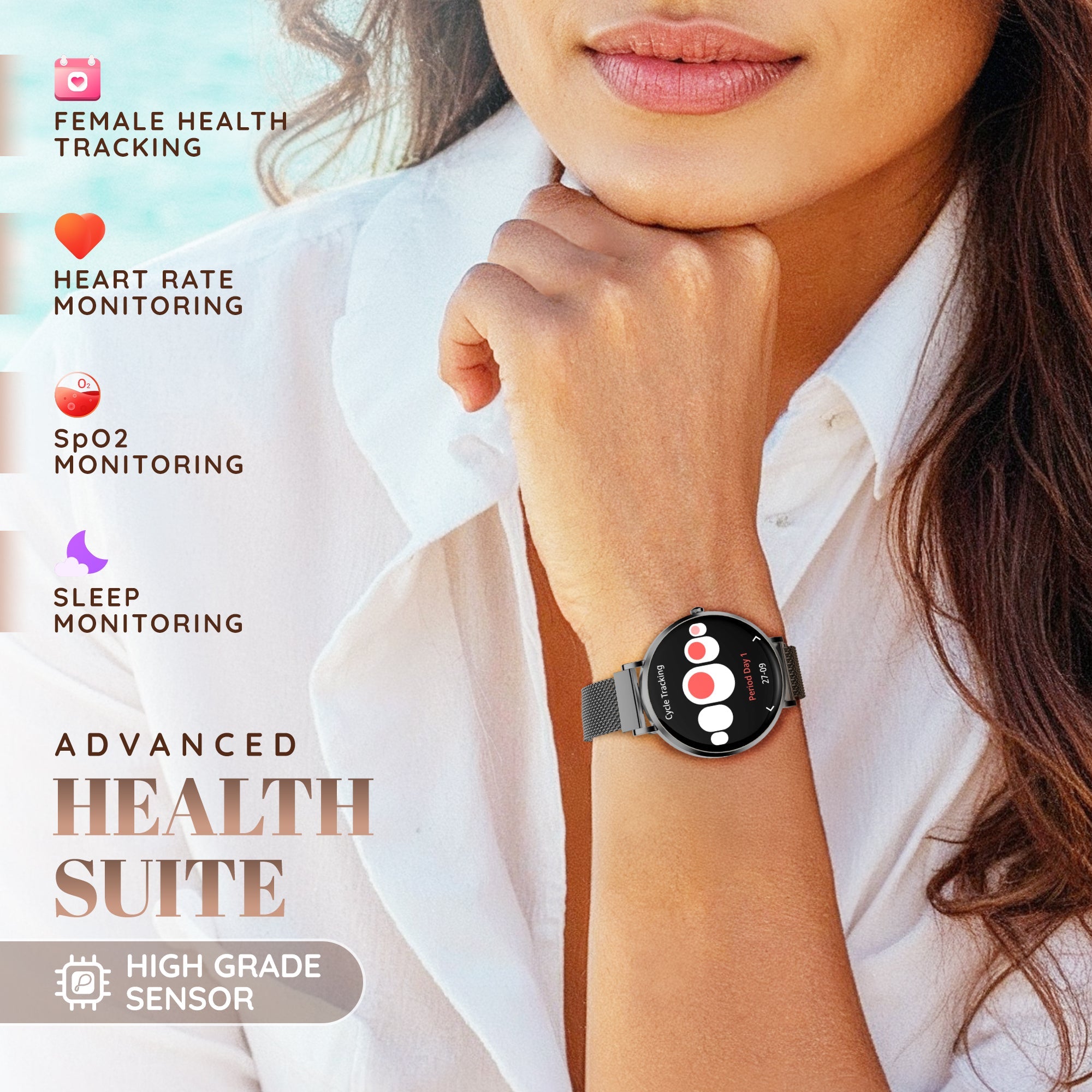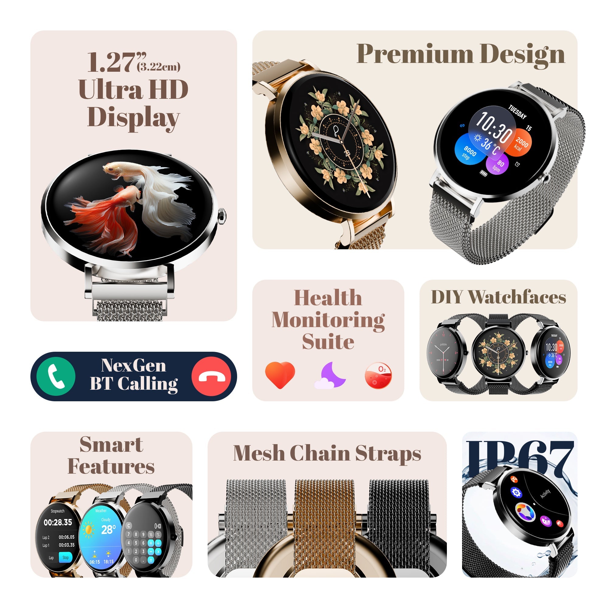 Style Meets Smartness with Pebble Ivy The Pebble Ivy Smartwatch is crafted for modern women who value elegance and utility. Featuring a 1.27” HD display and premium metallic mesh strap,...