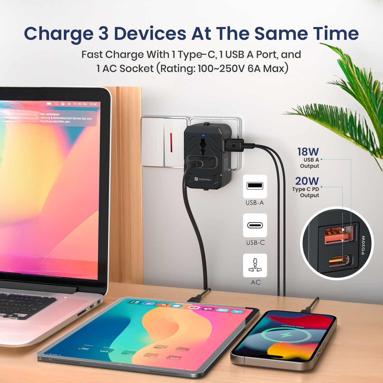 Portronics JuiceMate 4 20W Type-C PD outlet for fast charging of USB-C devices| Universal travel adapter for smart devices