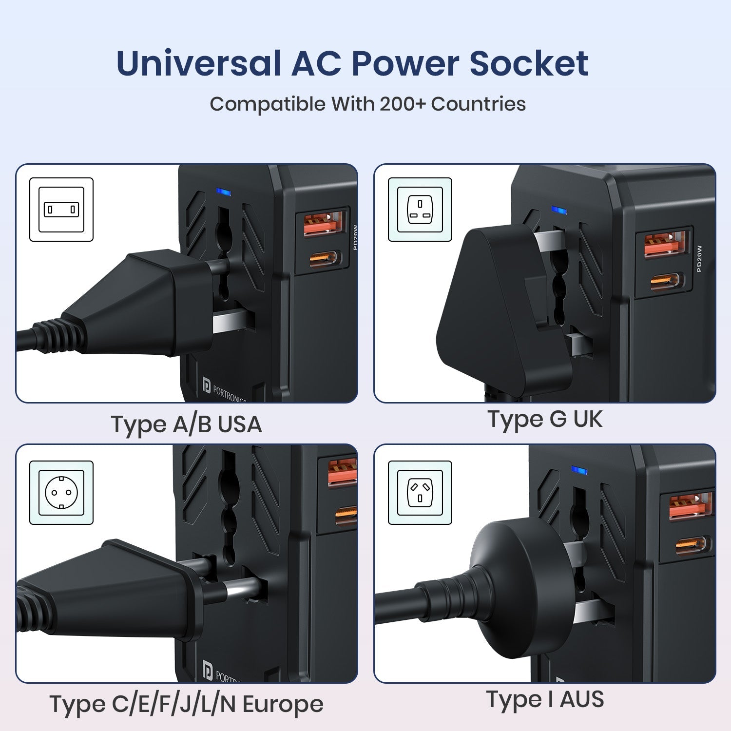 • 18W USB-A Output : Charge your devices quickly with the 18W USB-A output, providing fast power for phones, tablets, and USB-powered electronics, ideal for efficient charging while traveling worldwide.