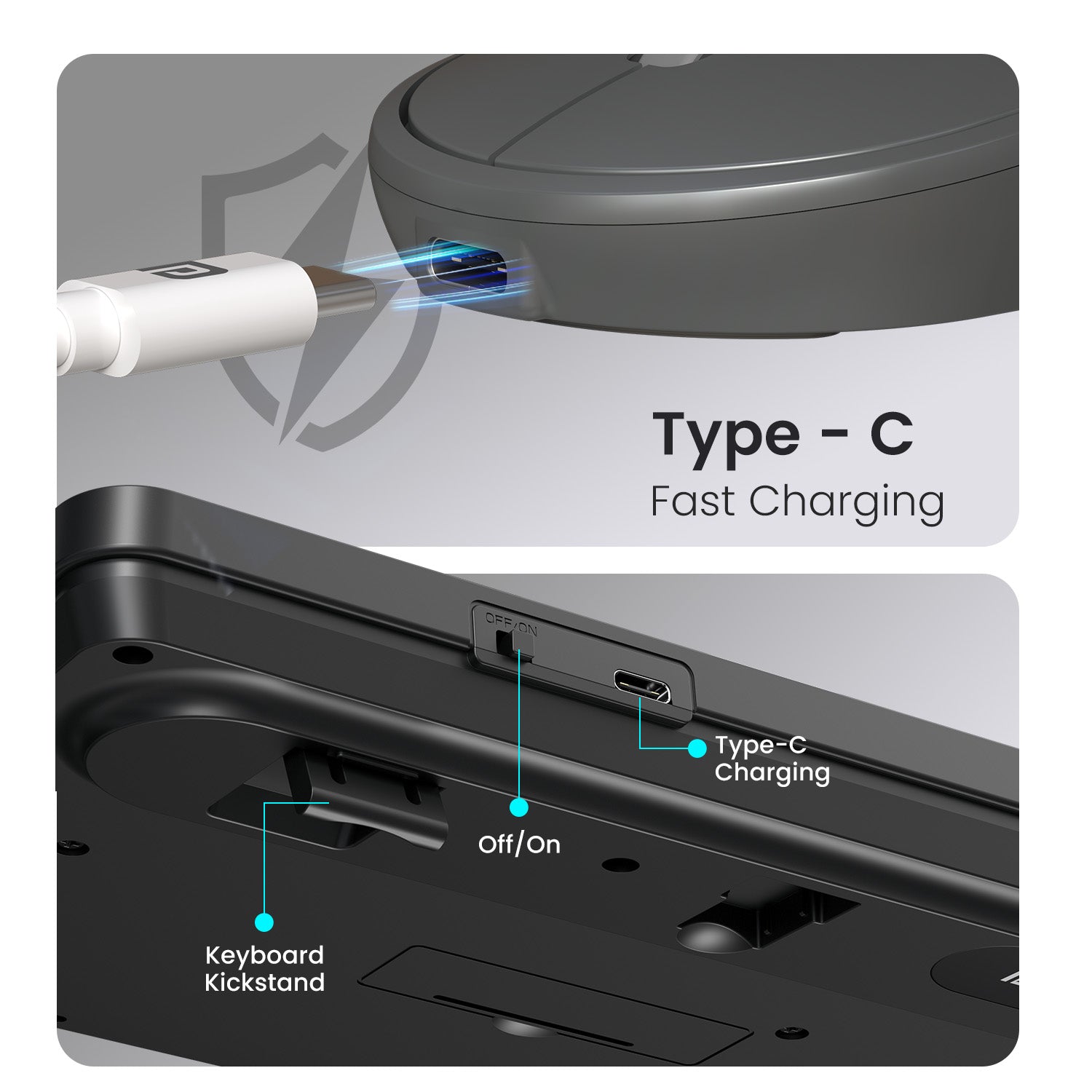 - Rechargeable & Type-C Fast Charging – No more battery replacements! The keyboard and mouse come with a long-lasting rechargeable battery and fast Type-C charging.