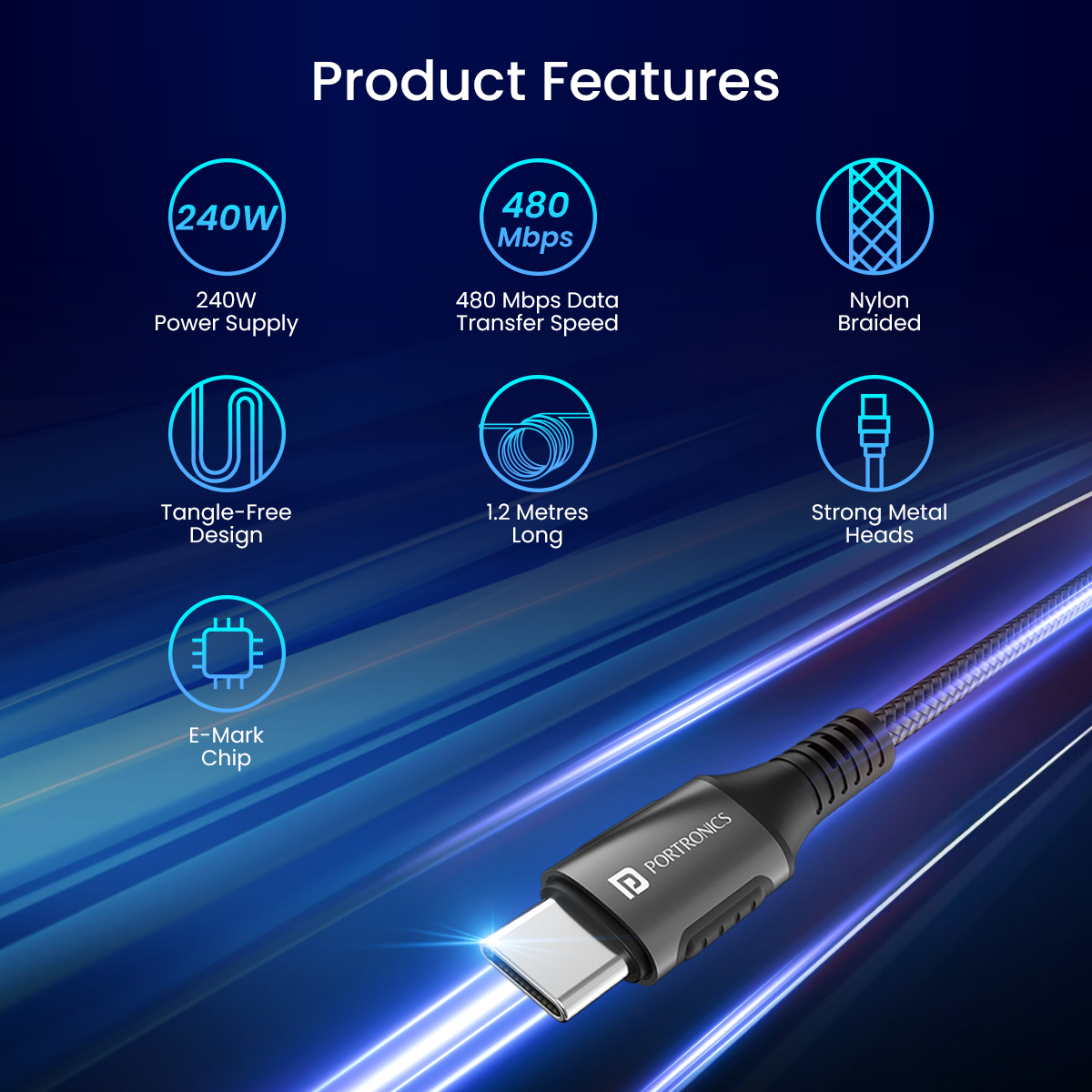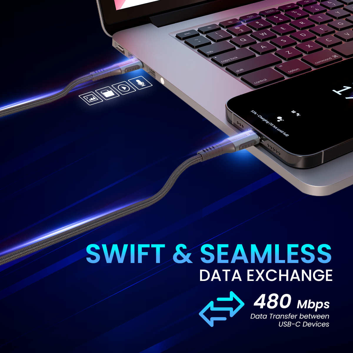 - Speedy Data Transfers: Konnect 240C USB 2.0 C cable supports data transfer, which means you can transfer data like videos, photos, files etc. from one USB C device to another at a speed of 480 Mbps.