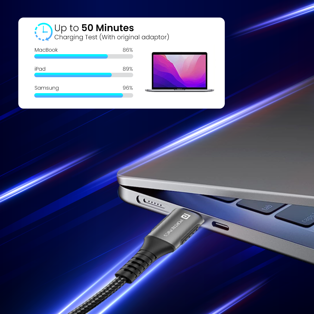 - 240W Fast Charging: Konnect 240C, a Type C to Type C PD cable, provides 240W for fast charging. In up to 50 minutes, with their original adapters, it can charge an iPhone 15 to 96%, a Samsung S23 to 96%, a MacBook Pro to 86%, and an iPad Pro to 89%.