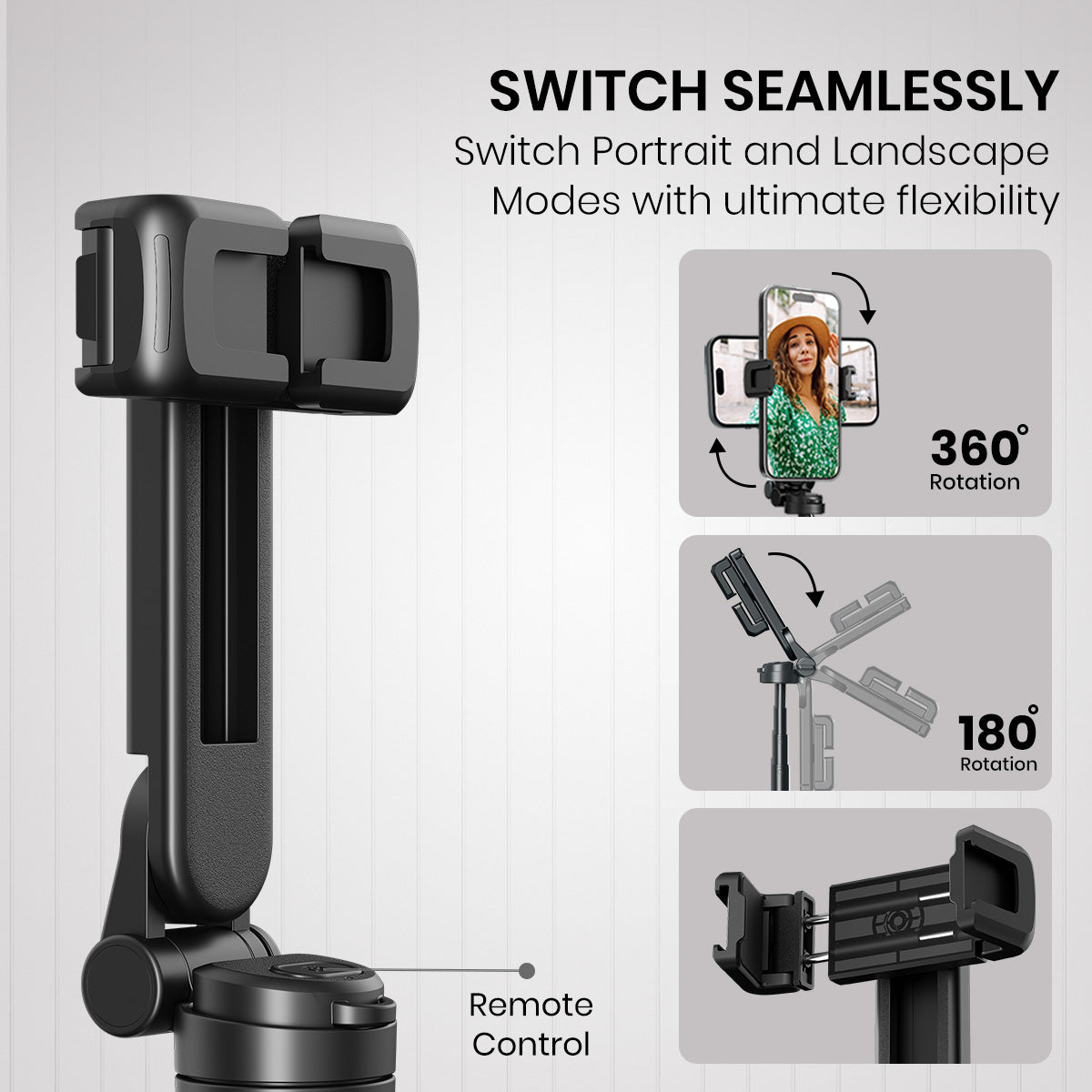 - Seamless 360° Rotation and 180° Tilt for Perfect Framing : Capture the best angle in every shot with full horizontal rotation and adjustable vertical tilt. Switch between portrait and landscape modes without readjusting your phone—ideal for reels, stories, or professional video calls.