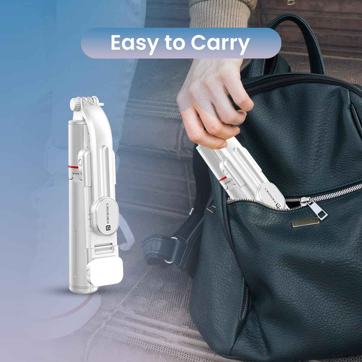 - Selfie Stick with Detachable Fill Lights: The Portronics LumiStick is a smart selfie stick with detachable built-in double-fill lights. With 3 modes (white light, warm light & natural light) to choose from for perfect selfies in any lighting.