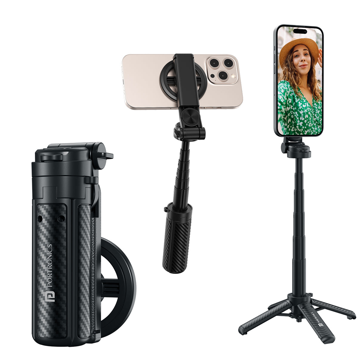 Portronics Lumistick Snap selfie stick for iphone | Foldable Selfie Stick Tripod with Bluetooth | Ideal for Vlogging, Virtual Meetings & Outdoor Shoots| best selfie stick for height adjustment