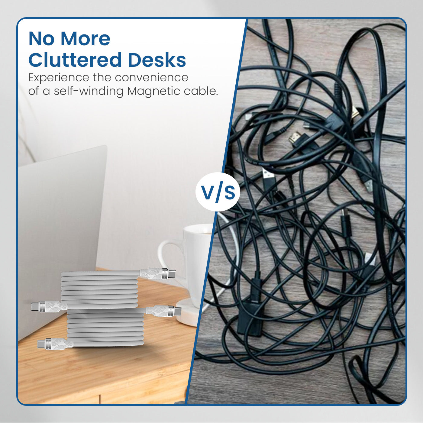 - Self-Winding Magnetic Cable: Designed with a self-winding magnetic feature to prevent tangling and minimize damage from accidental pulls.