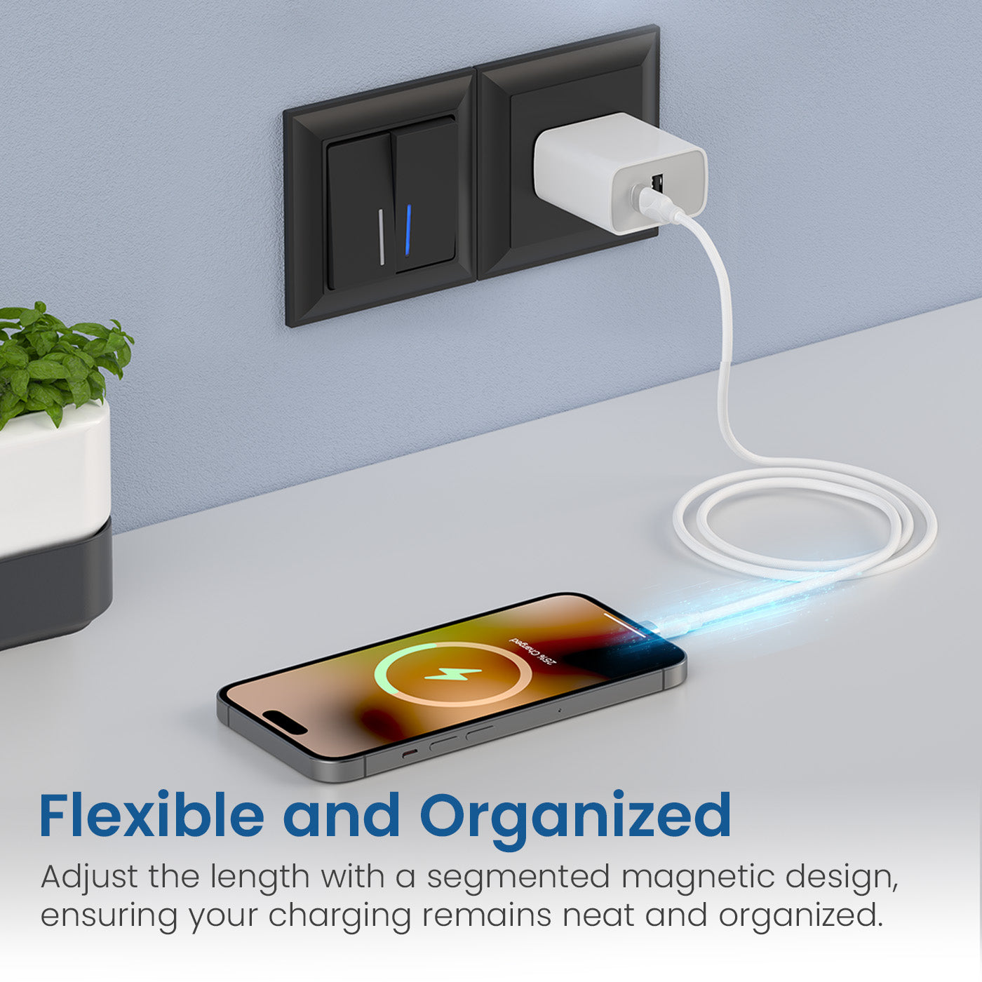 - Flexible & Organized: Adjustable length with a segment magnetic design allows you to customize the cable length while keeping it organized and tangle-free.