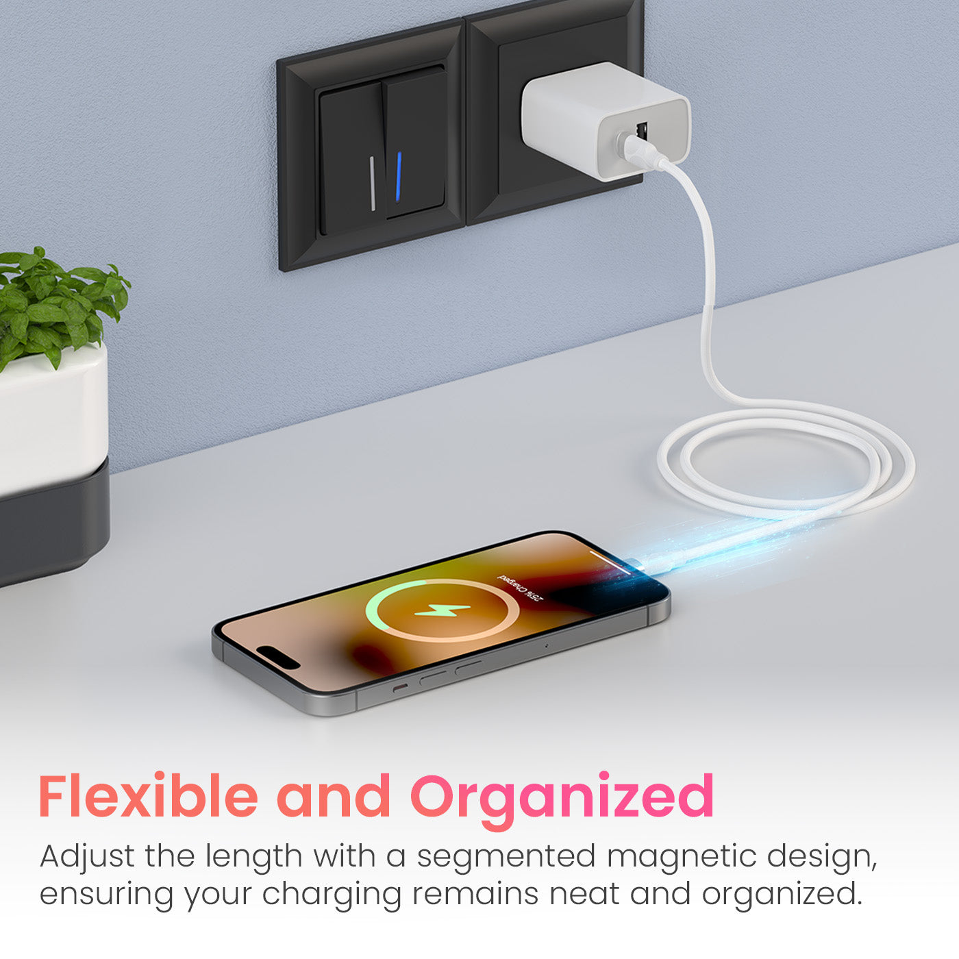 - Flexible & Organized: Adjustable length with a segment magnetic design allows you to customize the cable length while keeping it organized and tangle-free.