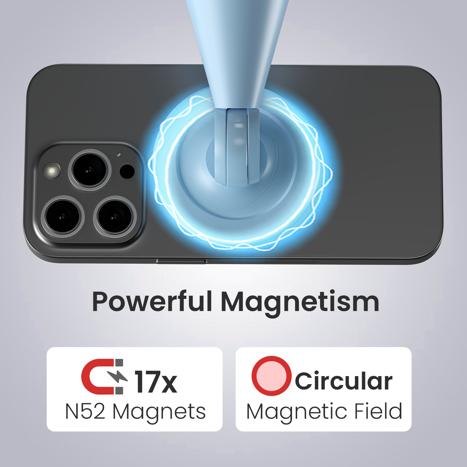 - Strong Magnetic Grip: Equipped with 17 N52-grade magnets and a circular magnetic field for a secure hold on your MagSafe-compatible devices.