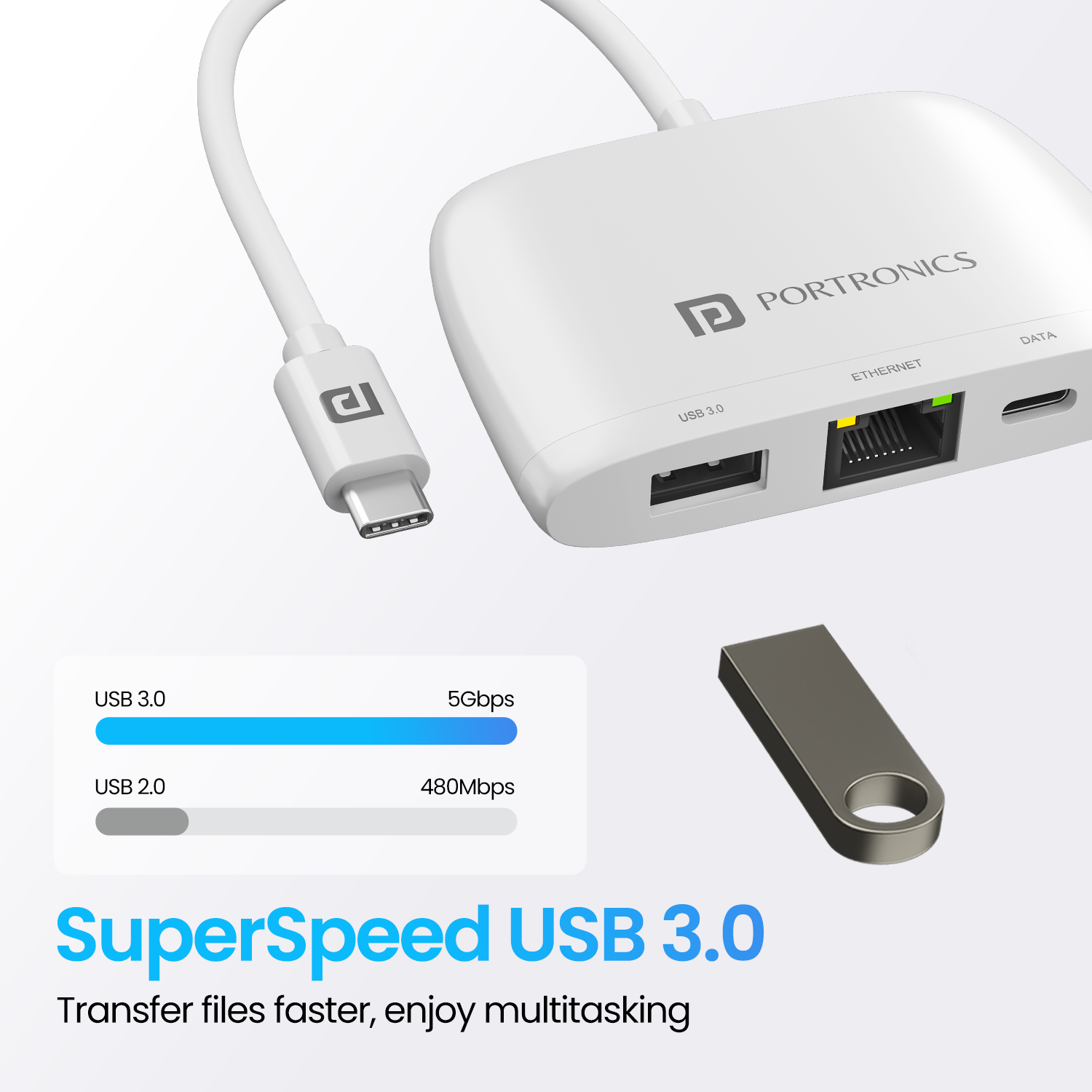 4-in-1 USB Hub 4-in-1 Multiport USB Hub: Combine all your connectivity needs into the Portronics Mport 41 USB Hub with a 1000 Mbps Ethernet port, USB 3.0 port, and 2...