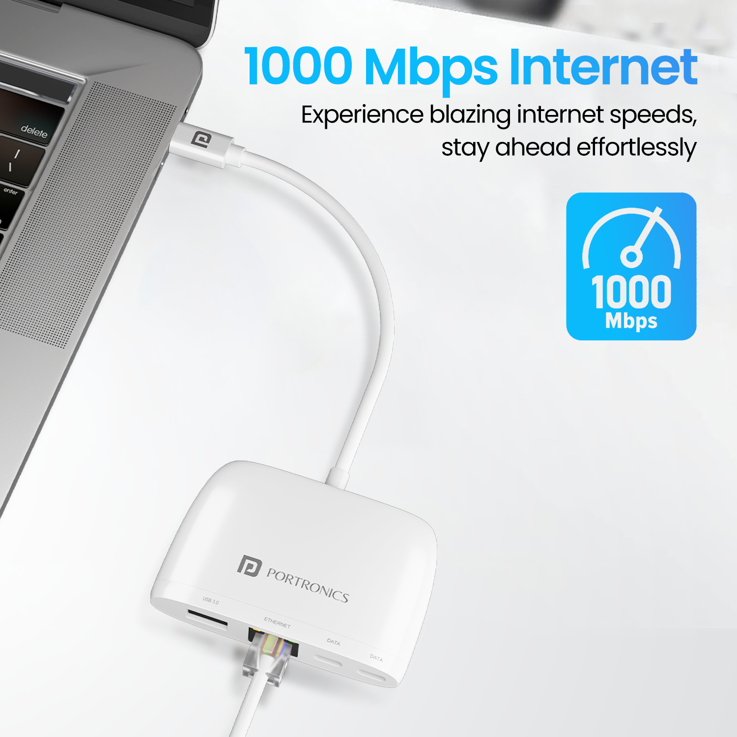 • 4-in-1 Multiport USB Hub: Combine all your connectivity needs into the Portronics Mport 41 USB Hub with a 1000 Mbps Ethernet port, USB 3.0 port, and 2 Type-C data ports.