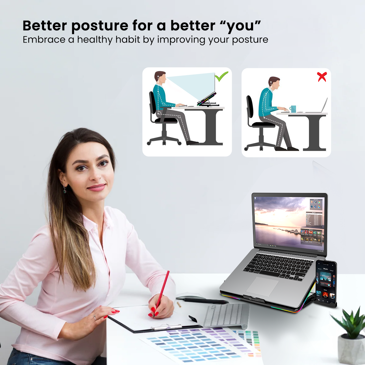 - Ergonomic Design: My Buddy Air laptop stand is made with Sturdy ABS along with an Iron mesh board to further aid in cooling the laptop. The Laptop stand for gaming has a weight of 840 grams and an easy-to-carry foldable design. It can easily fit your laptop bag or backpack.