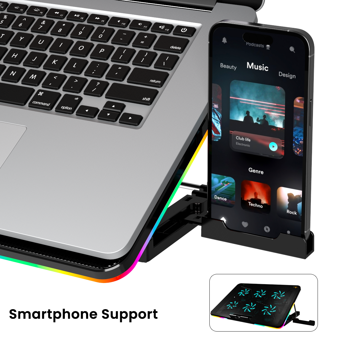 - Smartphone Support: The cooling comes with a smartphone holder for your Android/iOS device. Never let any important notification skip while you’re playing.
