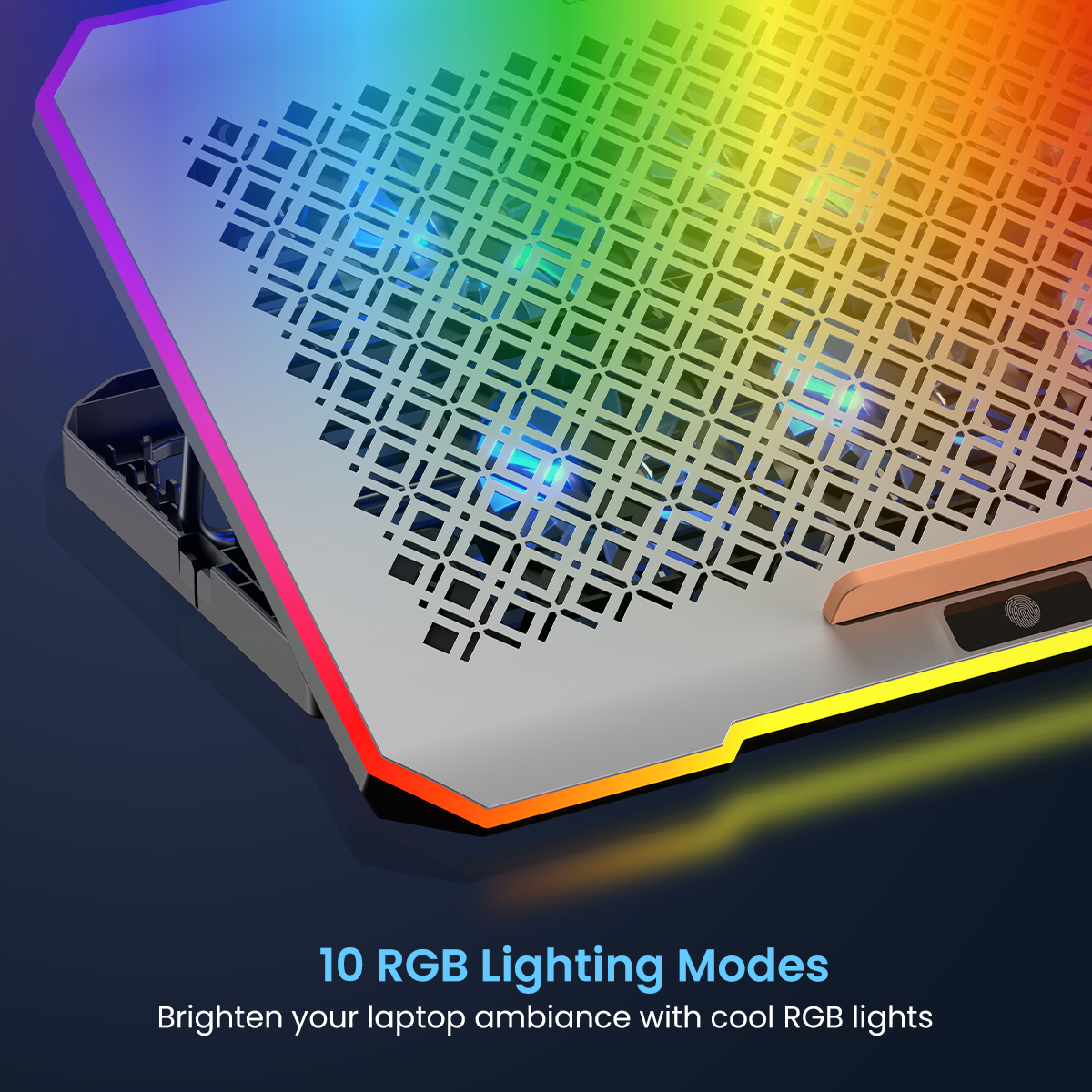 - 10 RGB Light Modes: Transform your laptop setup with the RGB lights surrounding this laptop pad. With 10 adjustable modes, they create a cool and visually stunning atmosphere for your gaming or work sessions.
