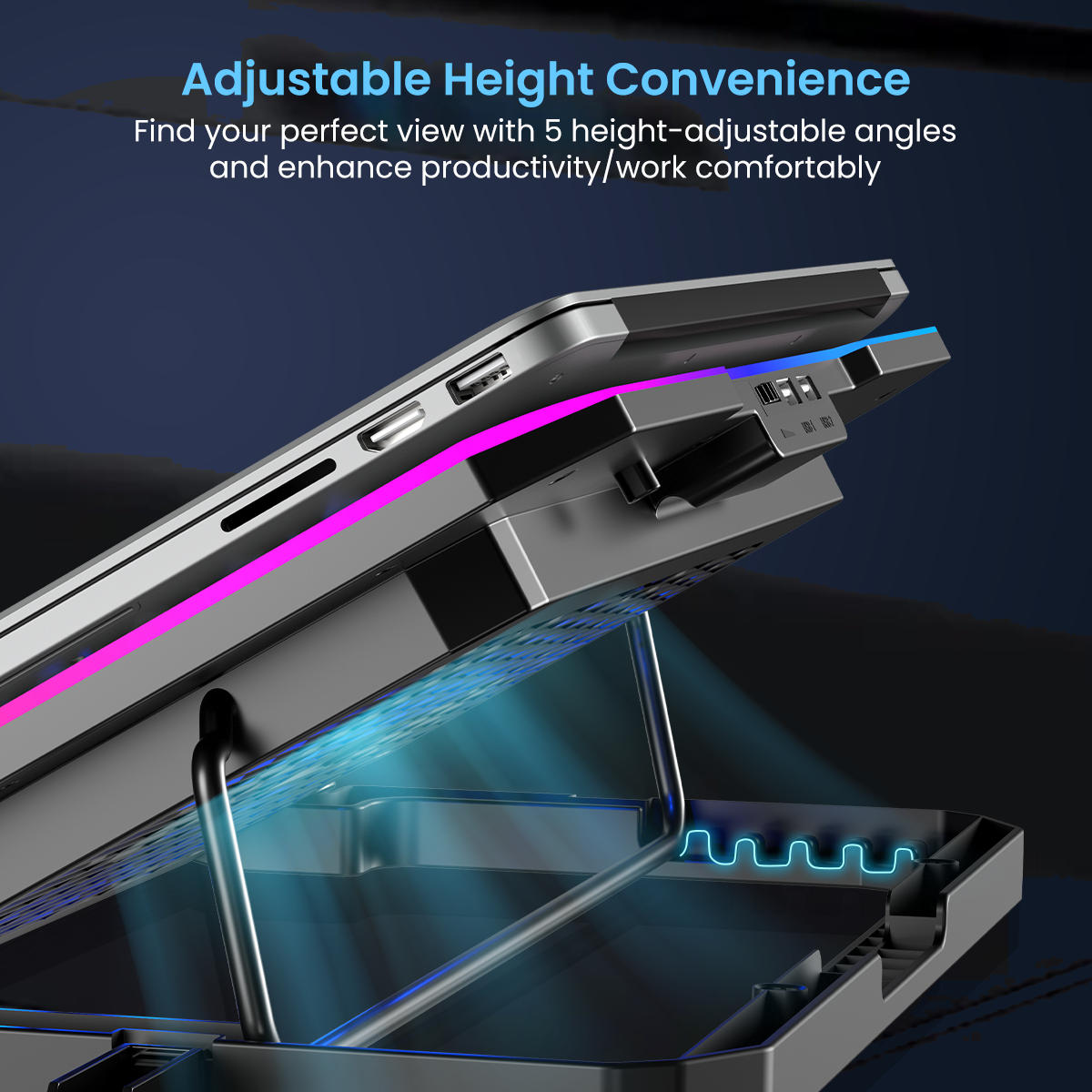 - 5 Adjustable Elevation Angles: This ergonomic laptop cooling pad offers 5 customizable height levels to achieve the perfect viewing angle, reducing strain on your neck and shoulders and enhancing your comfort and productivity.