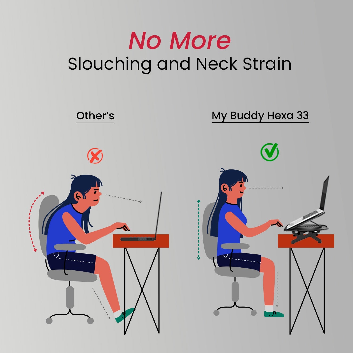 - Elevate Your Laptop: Experience the ultimate comfort and productivity with the My Buddy Hexa 33, a four-legged Laptop Stand! Say goodbye to slouching and neck strain as you elevate your laptop to the perfect eye level.
