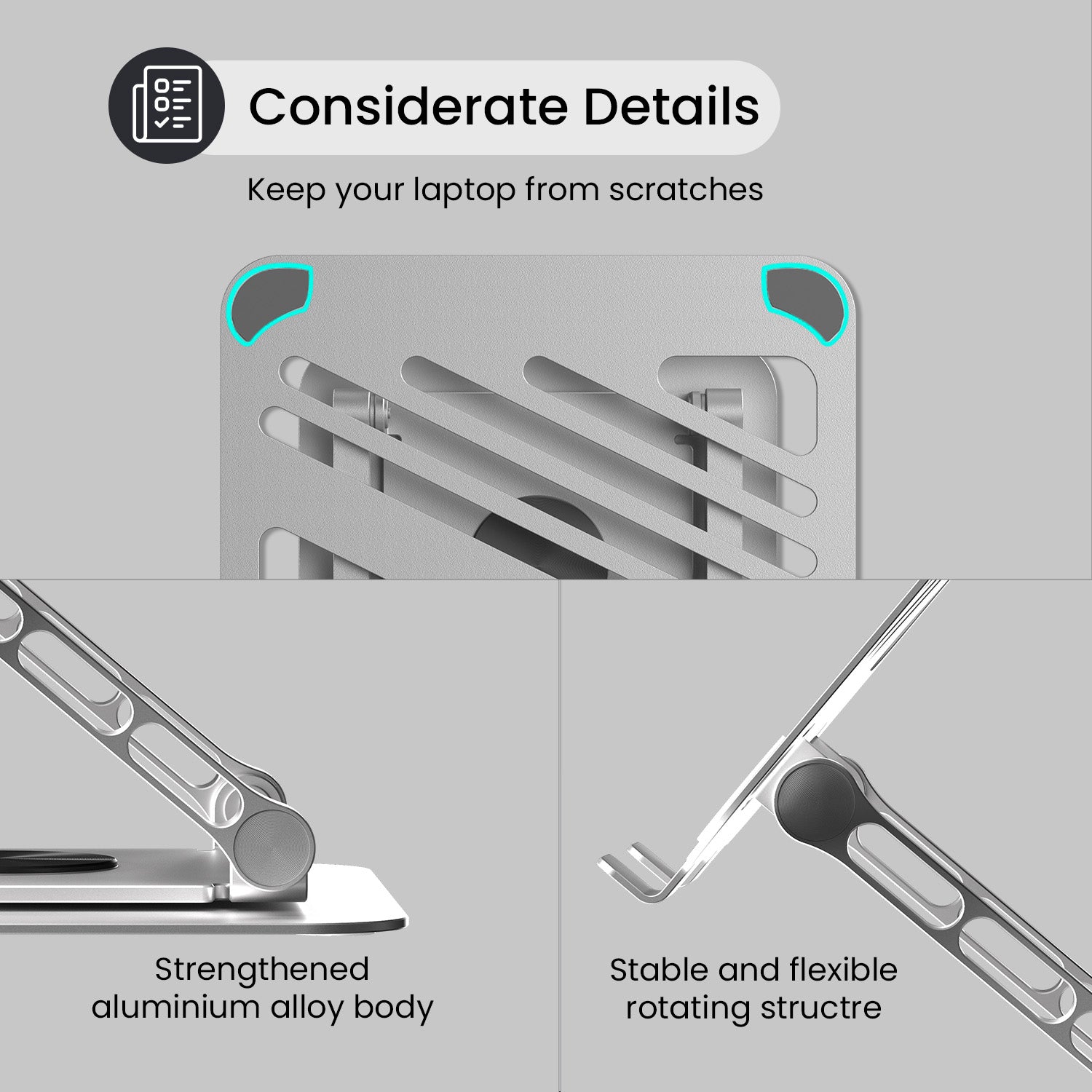 - Anti-Slip Protection - The stand comes with panels, grooves, and anti-slip silicone pads at the bottom, to hold your laptop in place and prevent it from sliding.
