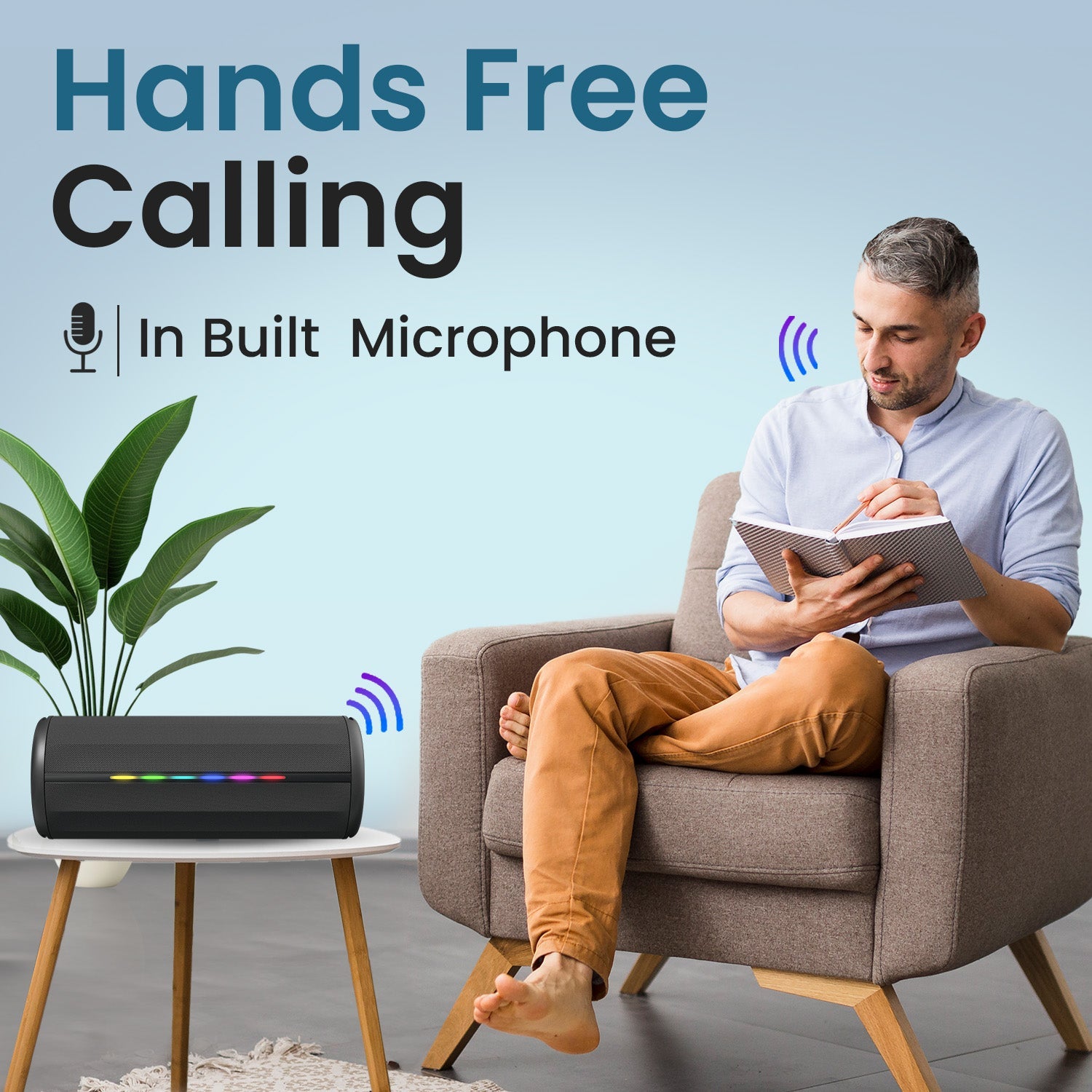 Hands-Free Calling with Built-in Mic- Answer calls easily without reaching for your phone—this wireless speaker comes equipped with a built-in mic for hands-free calling and voice assistant support.